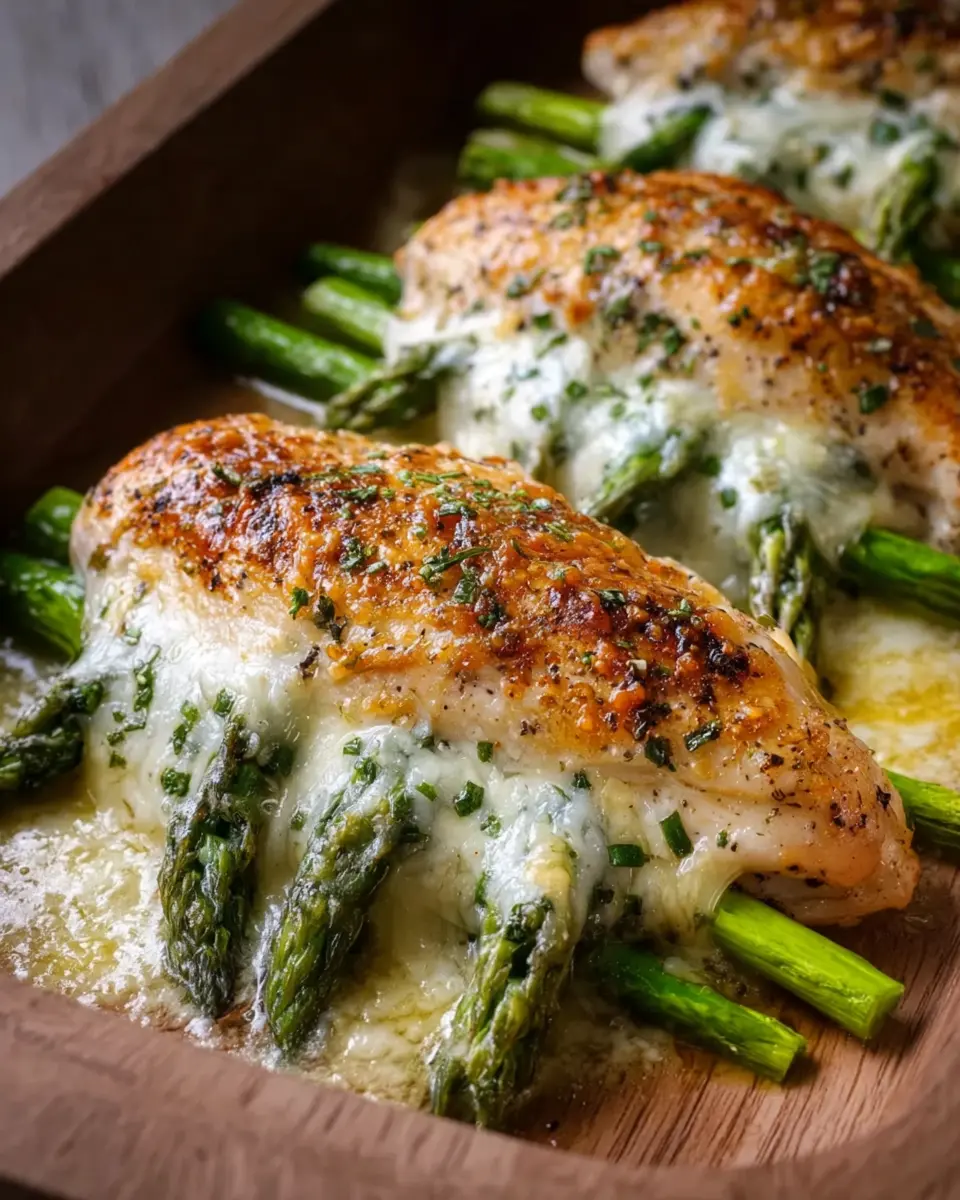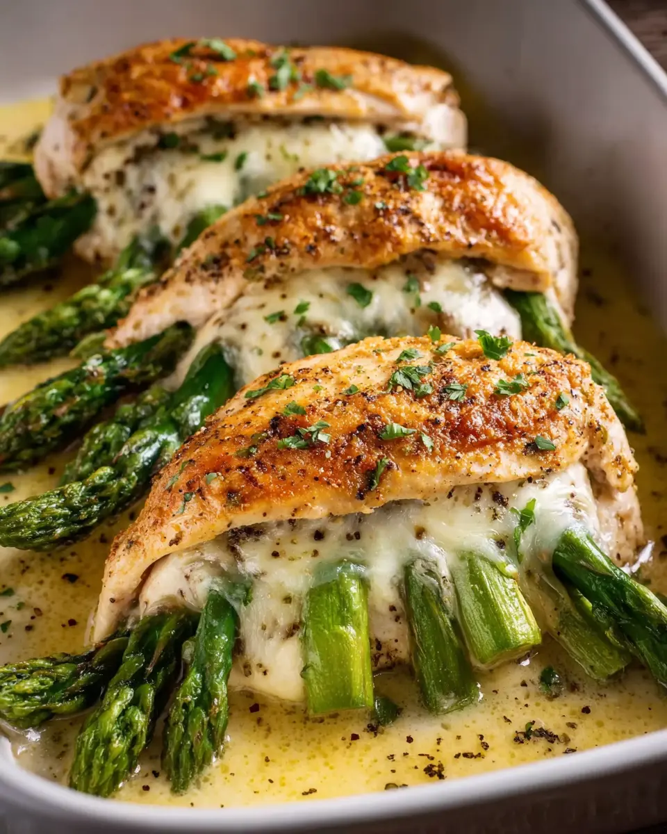 A delicious and healthy recipe for stuffed chicken that combines asparagus and mozzarella cheese for a delightful weeknight meal.