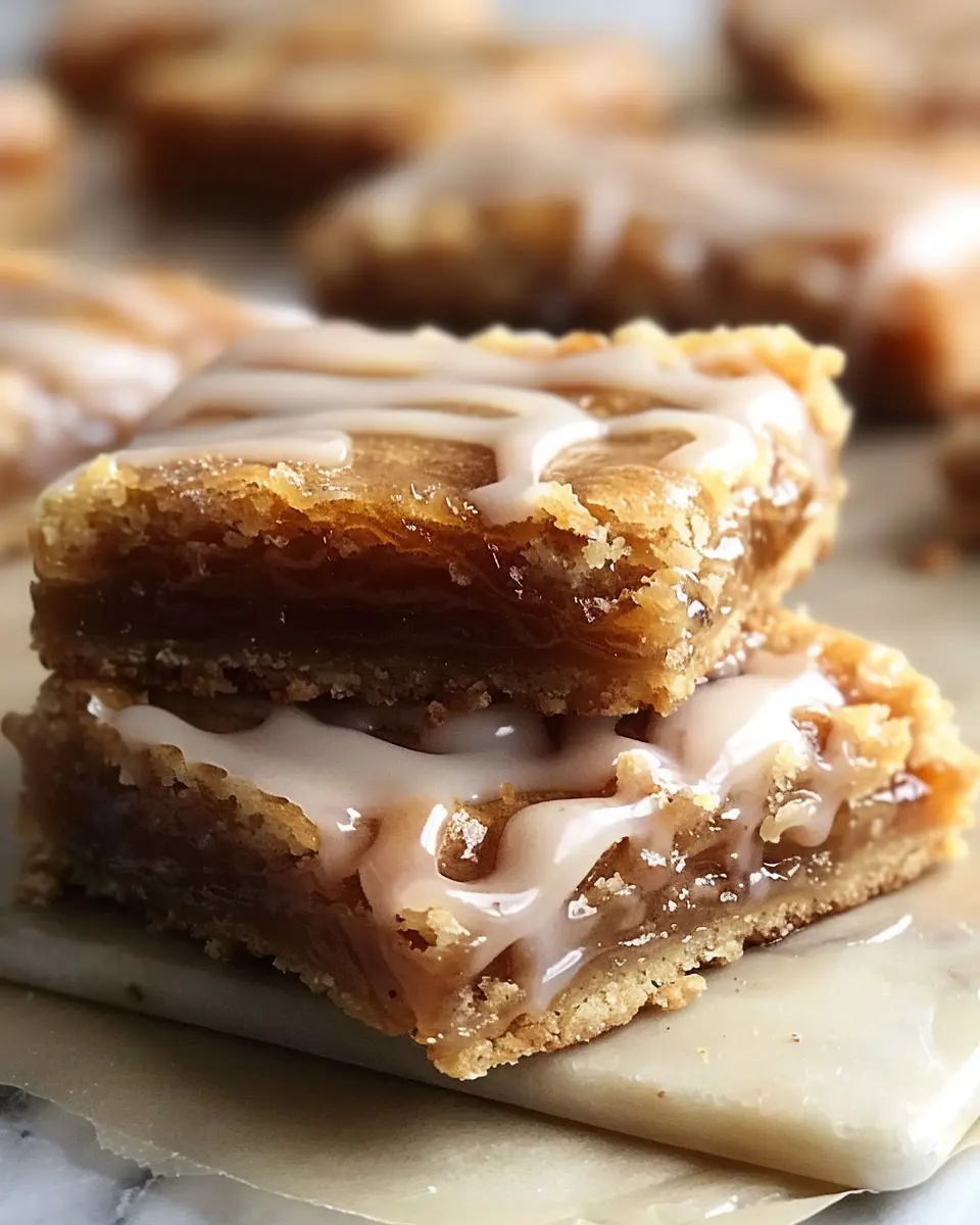 8. Drizzle the glaze over the warm bars and let them cool before slicing.