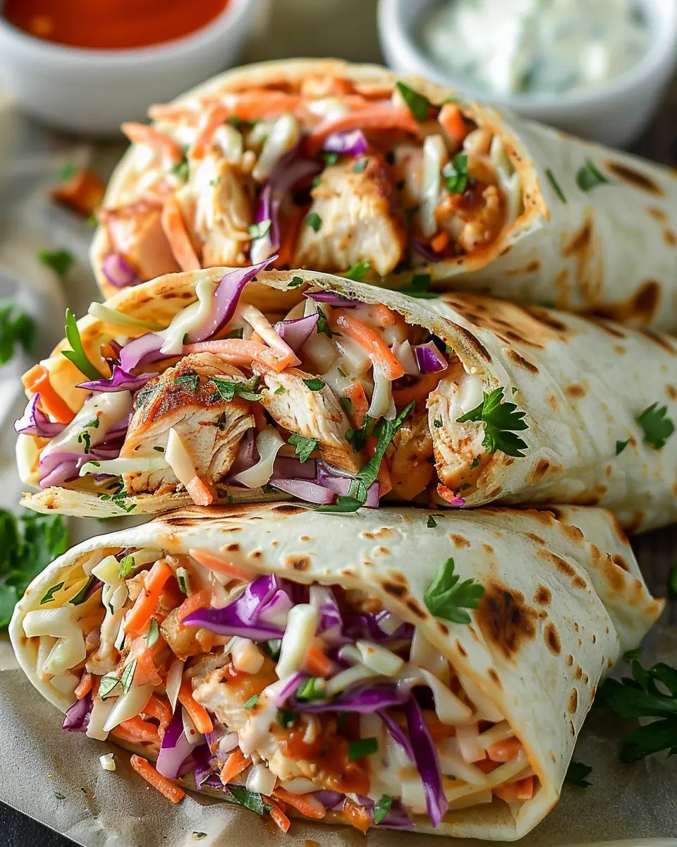 Accompaniments: Pair your wraps with sweet potato fries or baked zucchini chips for a delicious crunch. A side of homemade potato salad can also add a creamy contrast to that tangy slaw.