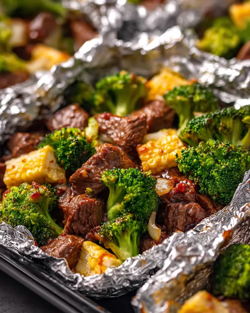 Enjoy a quick and delicious Beef and Broccoli Foil Pack for a hassle-free weeknight meal!