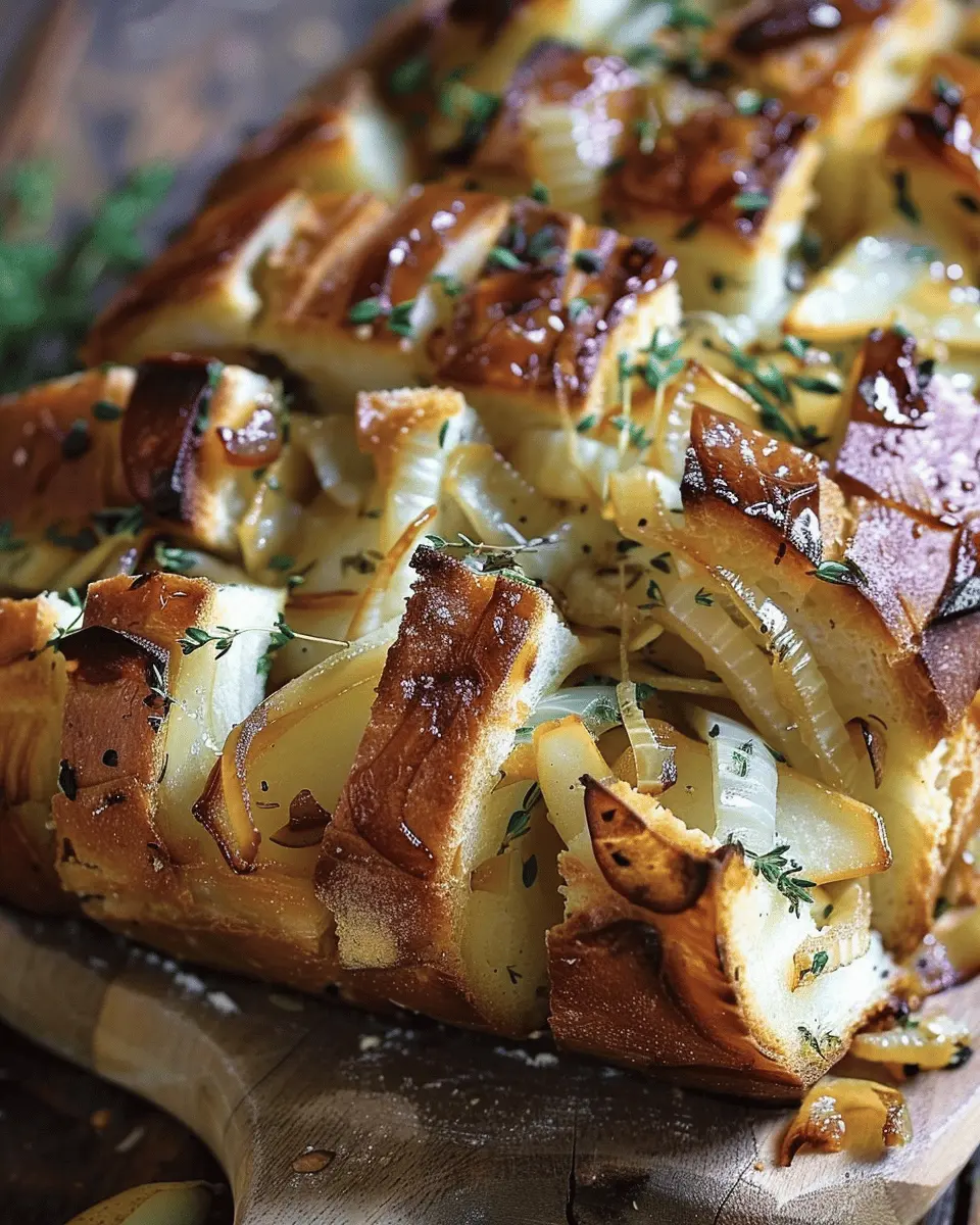 Brie Pull-Apart Bread is not just a dish; it’s a delightful experience that you can share with friends or savor on a cozy evening at home. The gooey richness of brie paired with sweet, caramelized onions and juicy pears wrapped in warm bread is a comforting treat that feels fancy yet simple. Let’s dive into the step-by-step process to prepare this delicious recipe!