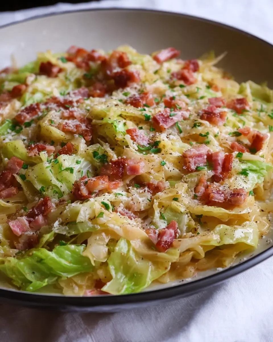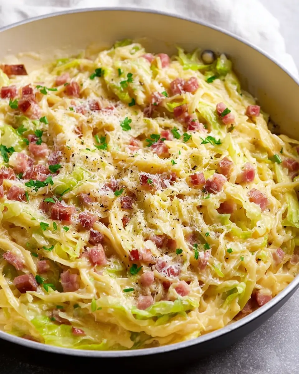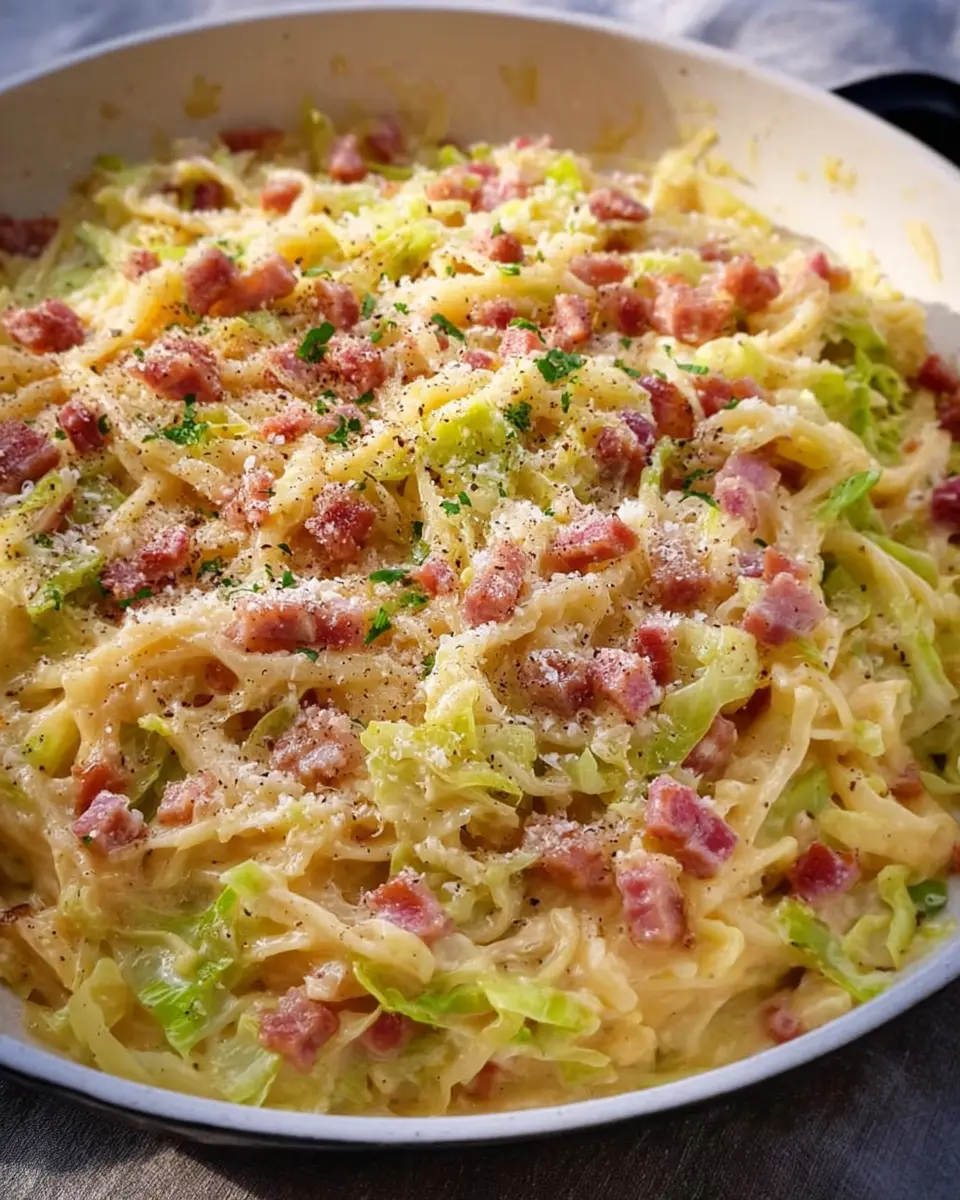 PrintCabbage Carbonara: A Delicious Twist with Turkey Bacon and Chicken Ham