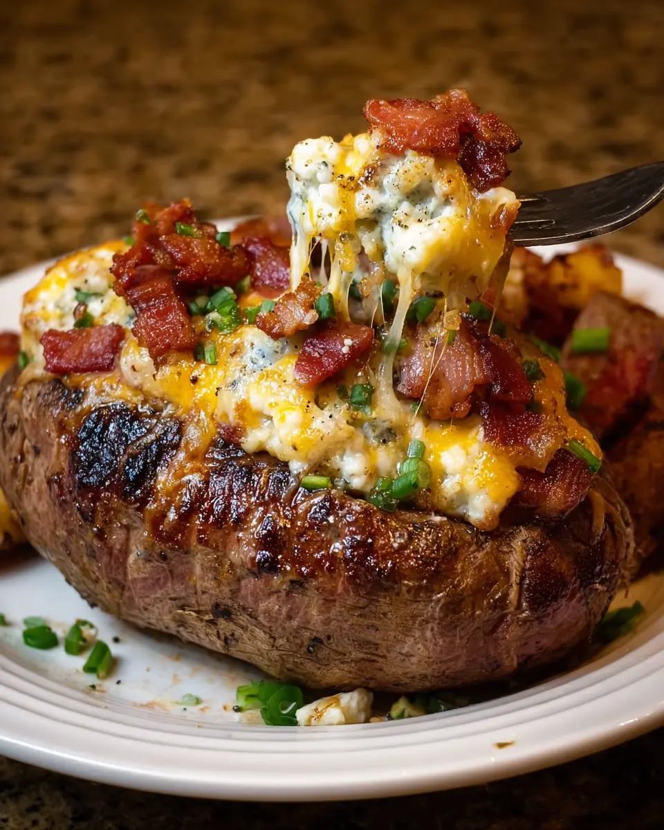 First and foremost, these stuffed potatoes balance flavors and textures that will leave your taste buds dancing! Imagine perfectly fluffy baked potatoes filled with a luscious mixture of savory steak, crispy turkey bacon, and rich garlic butter. The combination of these ingredients creates a dish that’s not only hearty but also wonderfully indulgent. You won’t just eat with your mouth; your senses will be awakened!
