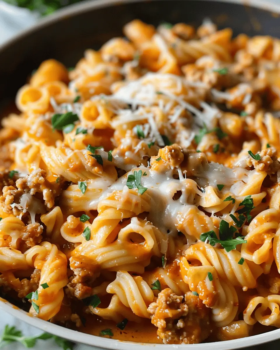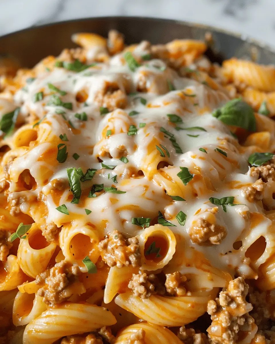 Indulge in this Cheesy Ground Turkey Pasta Recipe, a deliciously easy dish perfect for weeknight dinners.