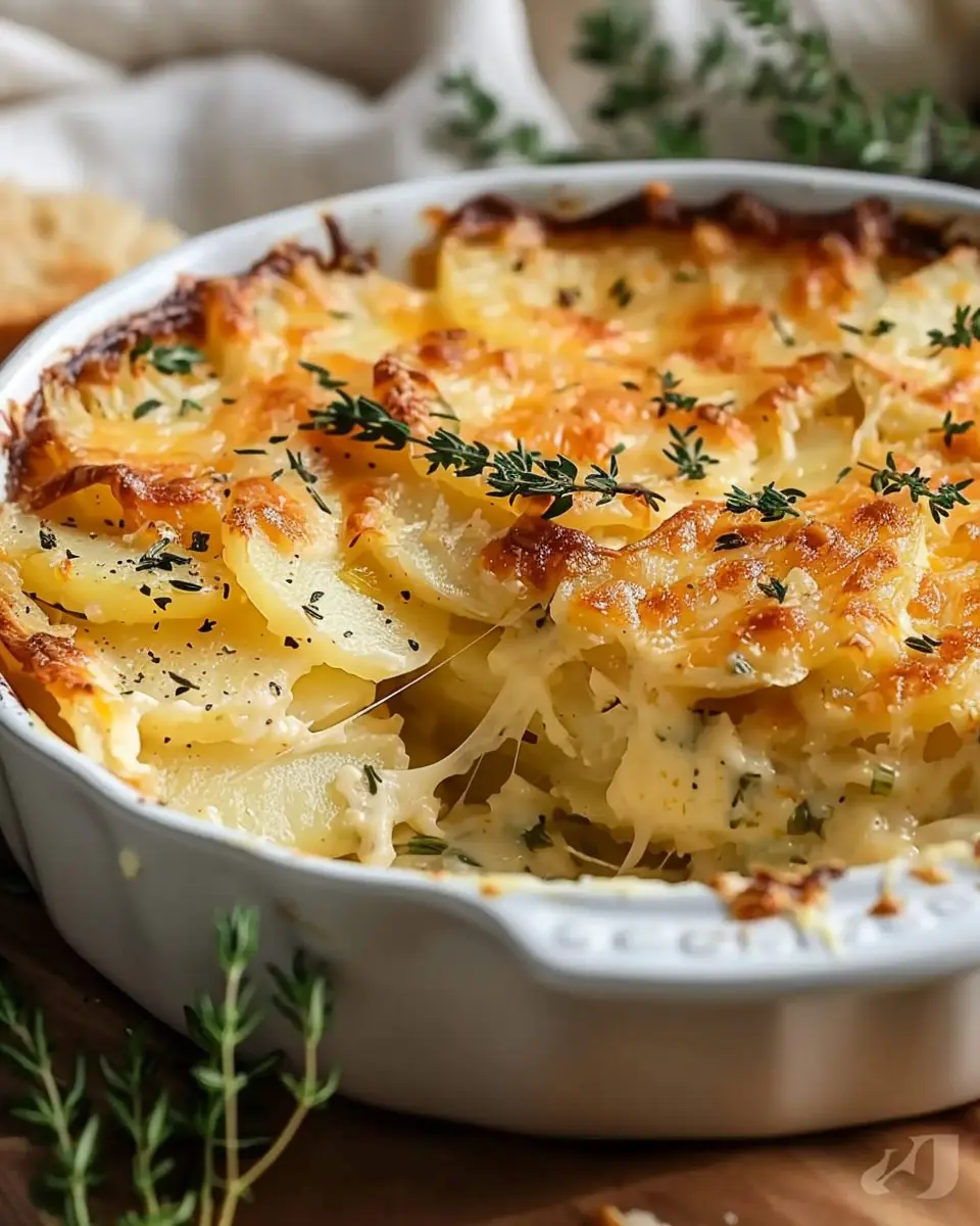 Cozy up with this delicious cheesy herb and potato casserole, perfect for warming you through the winter.