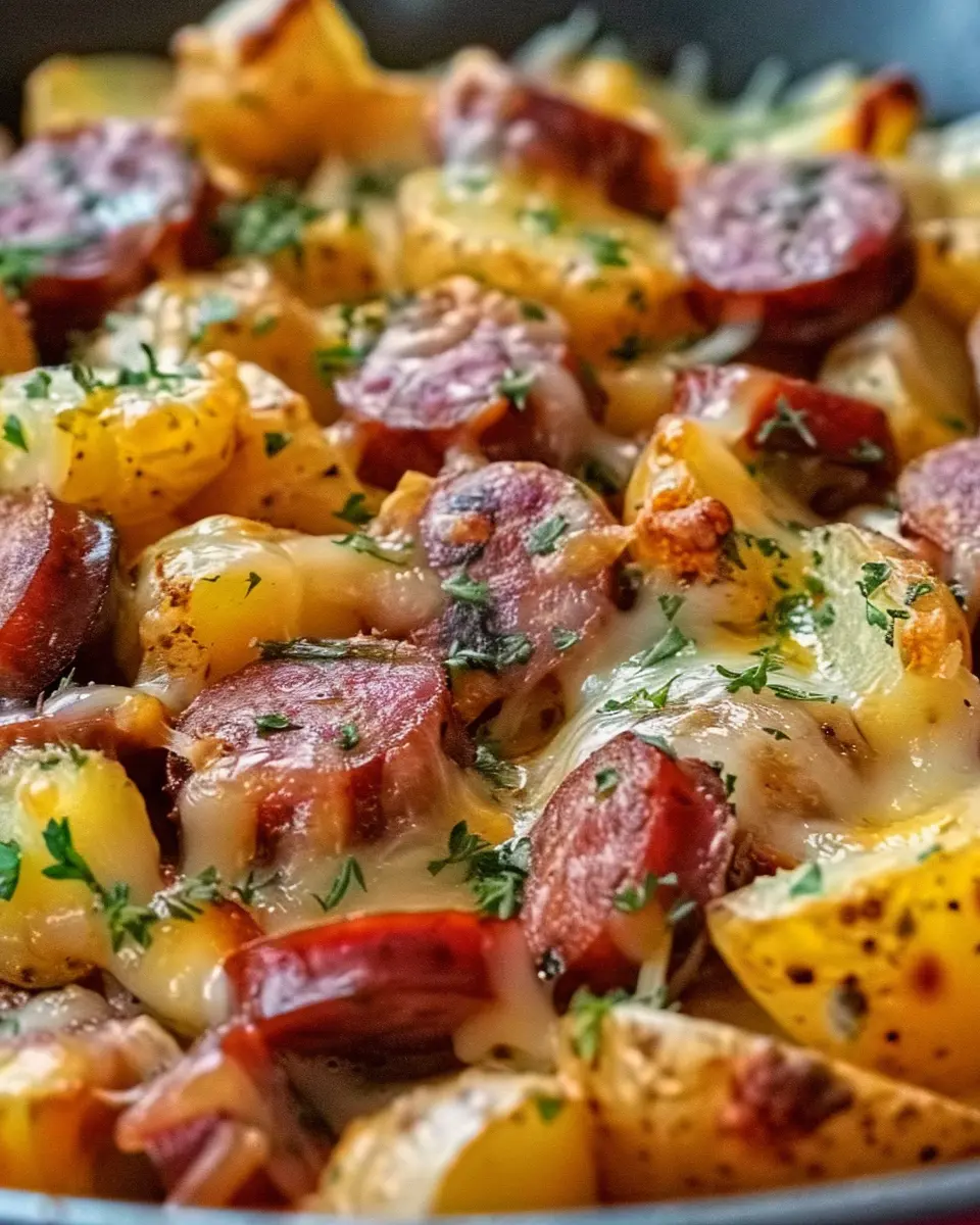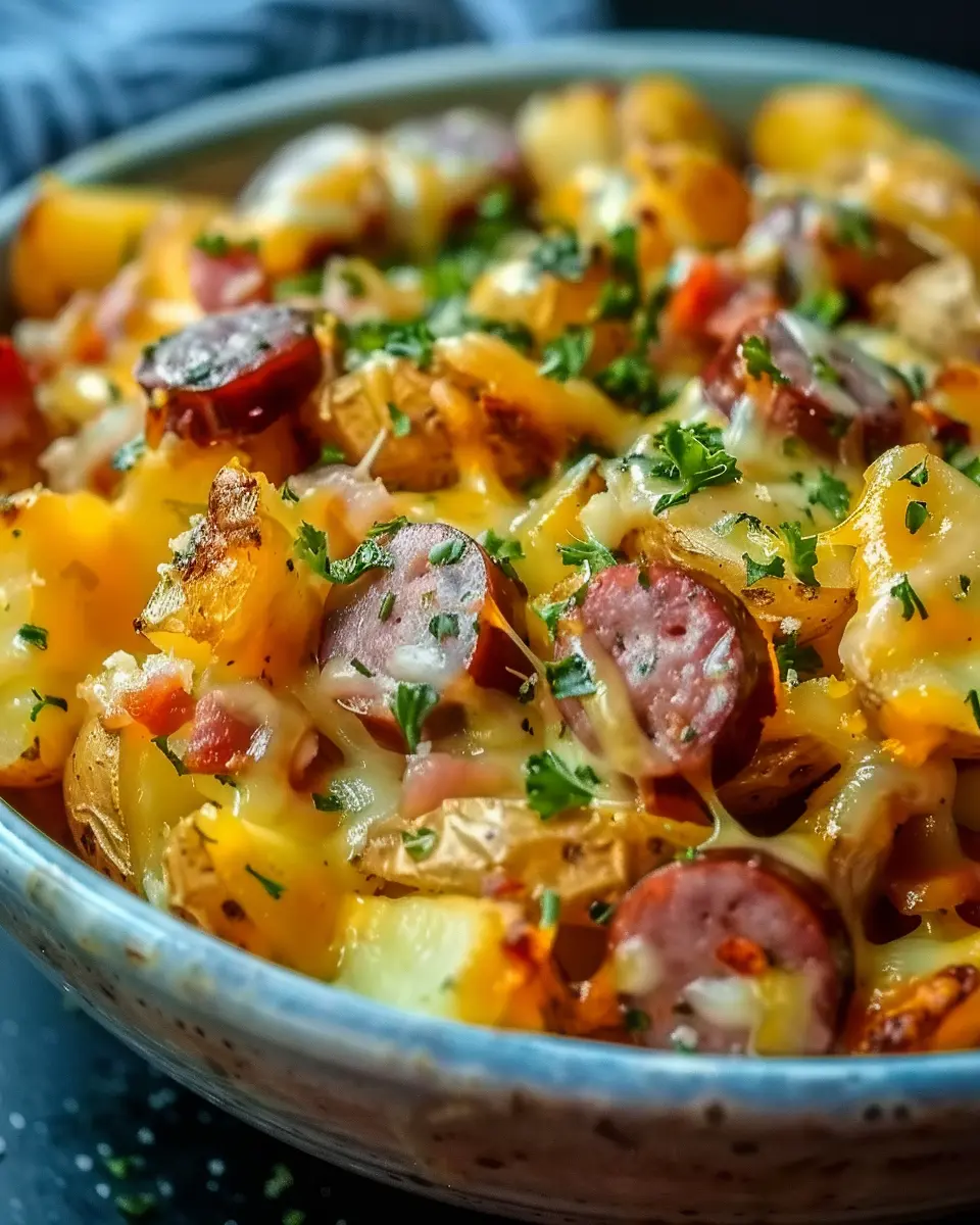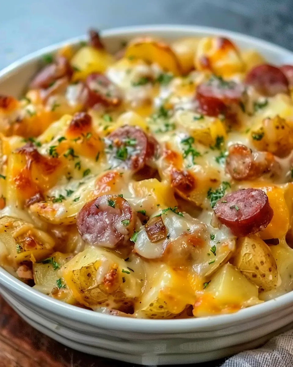 Keywords: Cheesy Ranch Potatoes, Smoked Sausage, Comfort Food