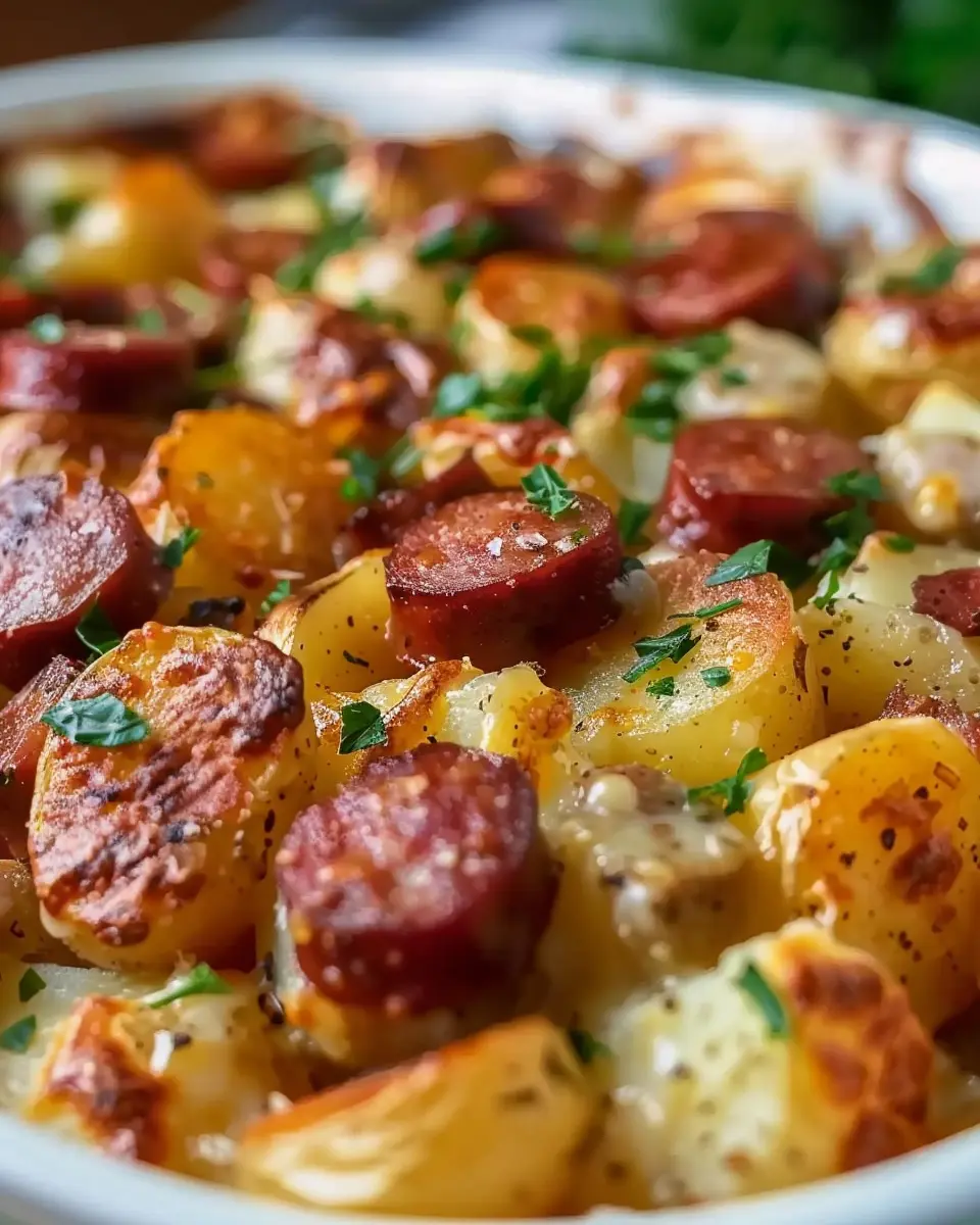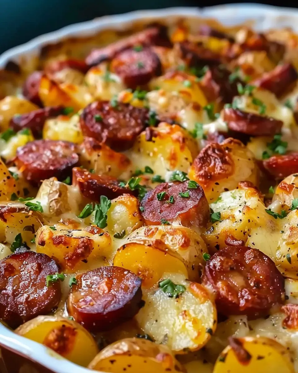 Keywords: Cheesy Ranch Potatoes, Smoked Sausage, Comfort Food