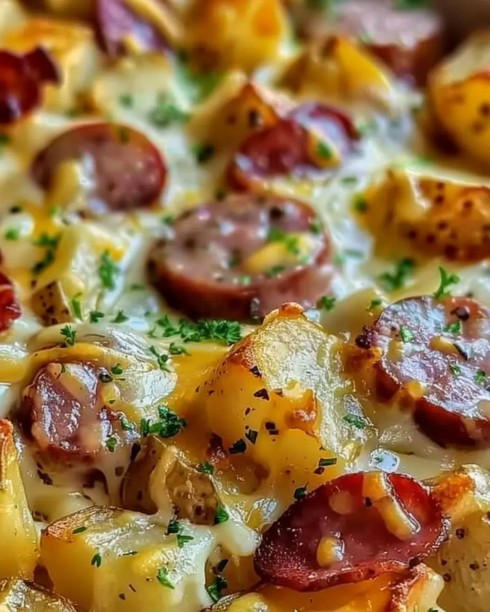 Keywords: Cheesy Ranch Potatoes, Smoked Sausage, Cozy Dinner