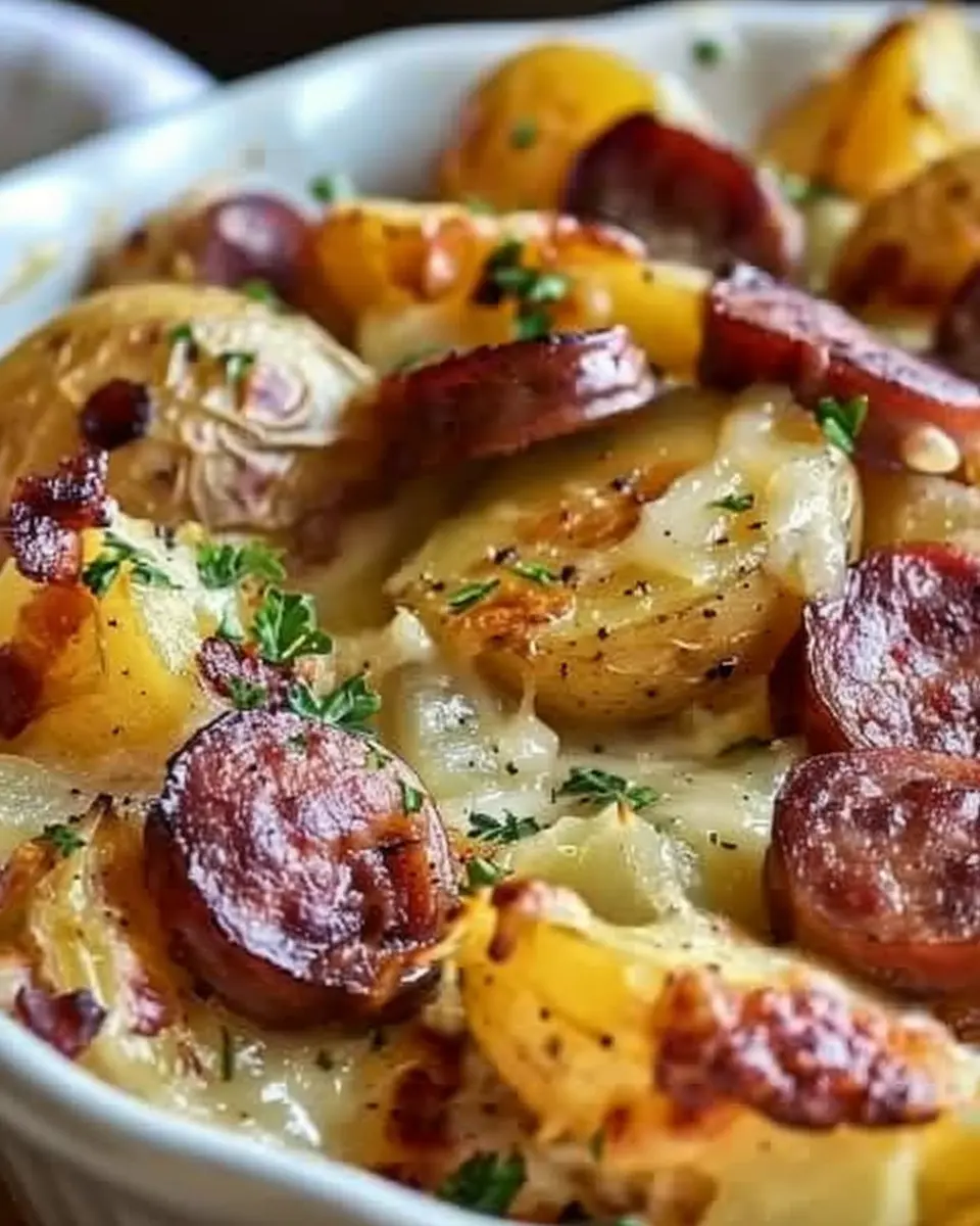 Keywords: Cheesy Ranch Potatoes, Smoked Sausage, Cozy Dinner