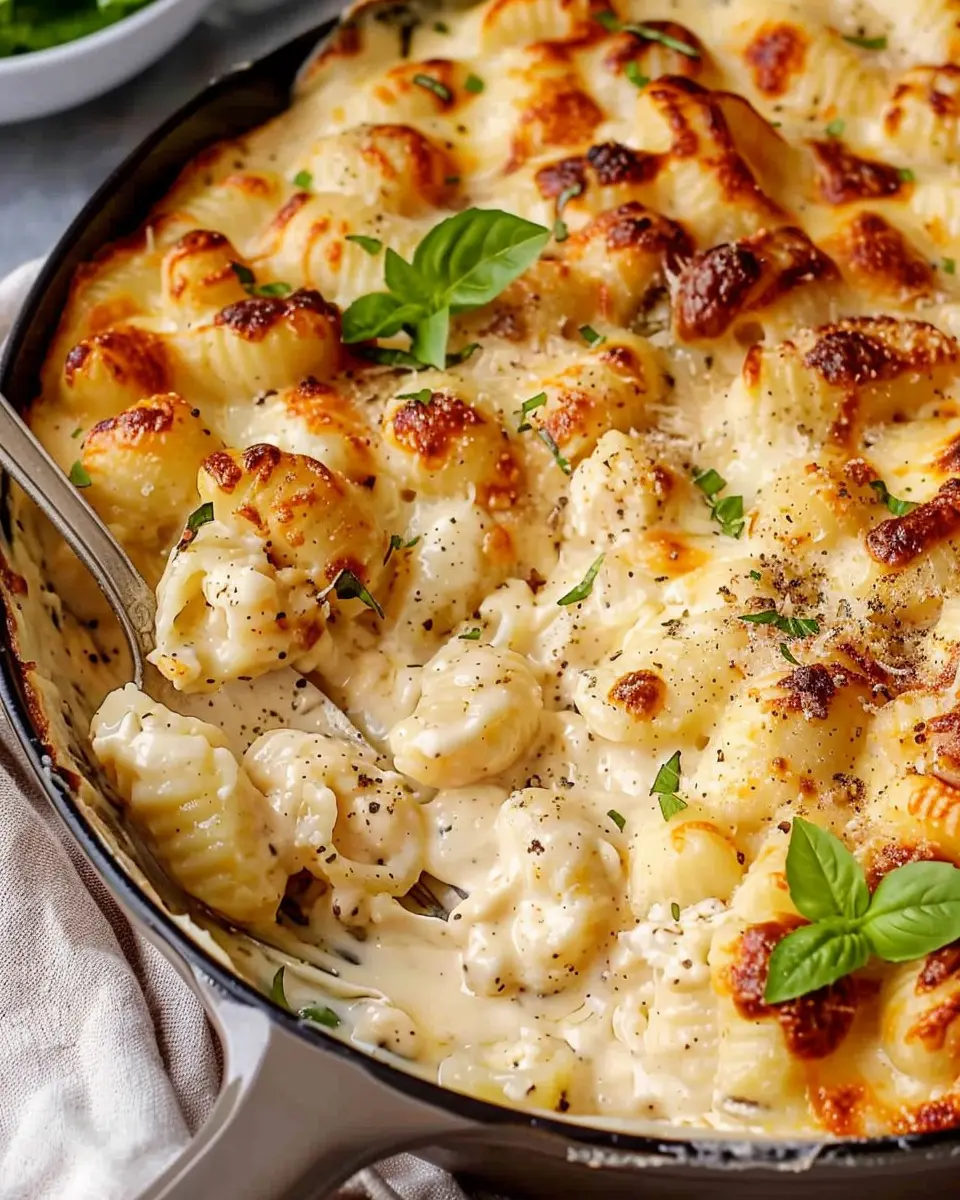 This Chicken Alfredo Gnocchi Bake is the ultimate comfort food, combining creamy Alfredo sauce, tender gnocchi, and flavorful chicken in a warm, cheesy casserole.