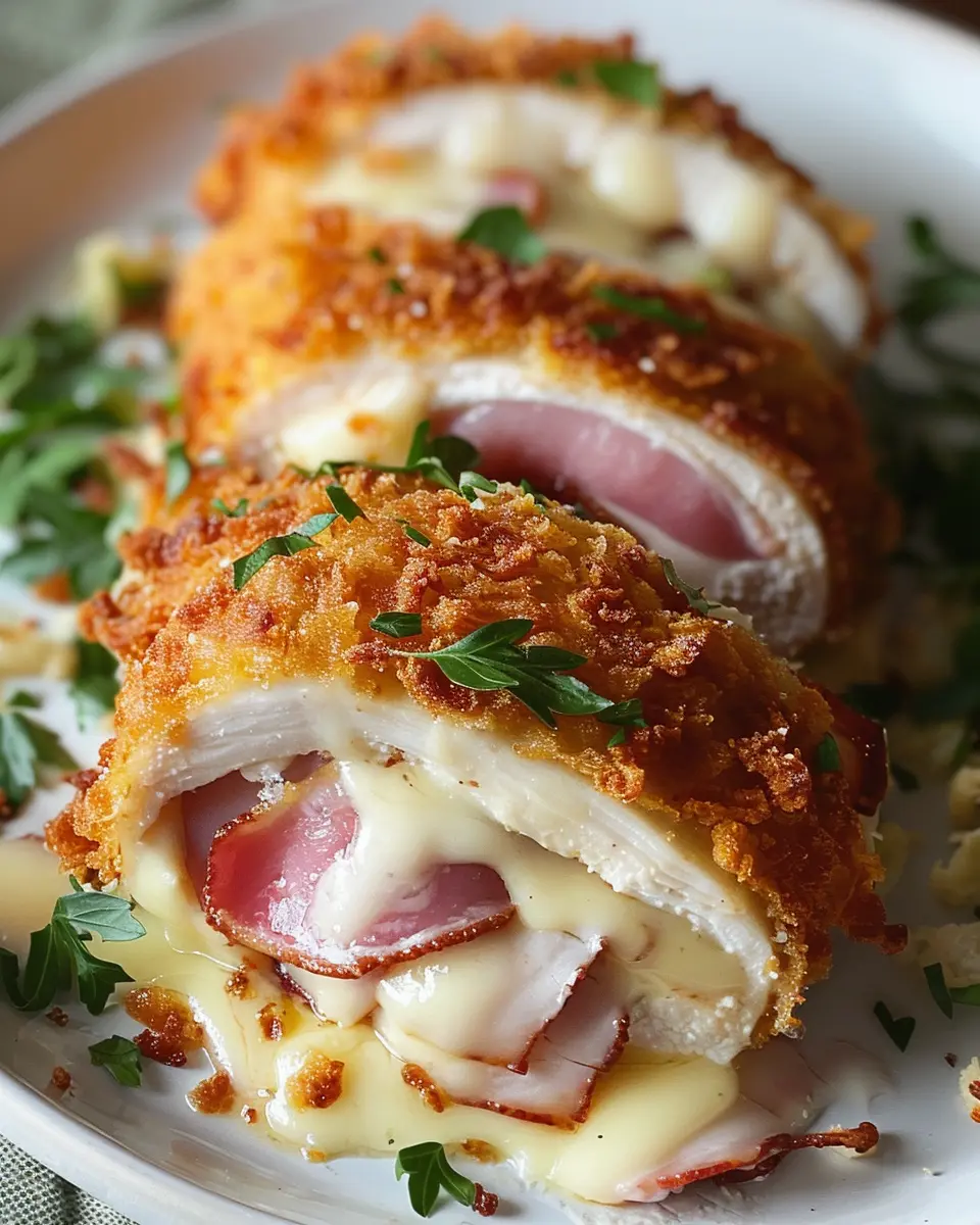 - Baking Option: For a healthier method, bake the Chicken Cordon Bleu at 375°F for about 25-30 minutes until golden and crisp.