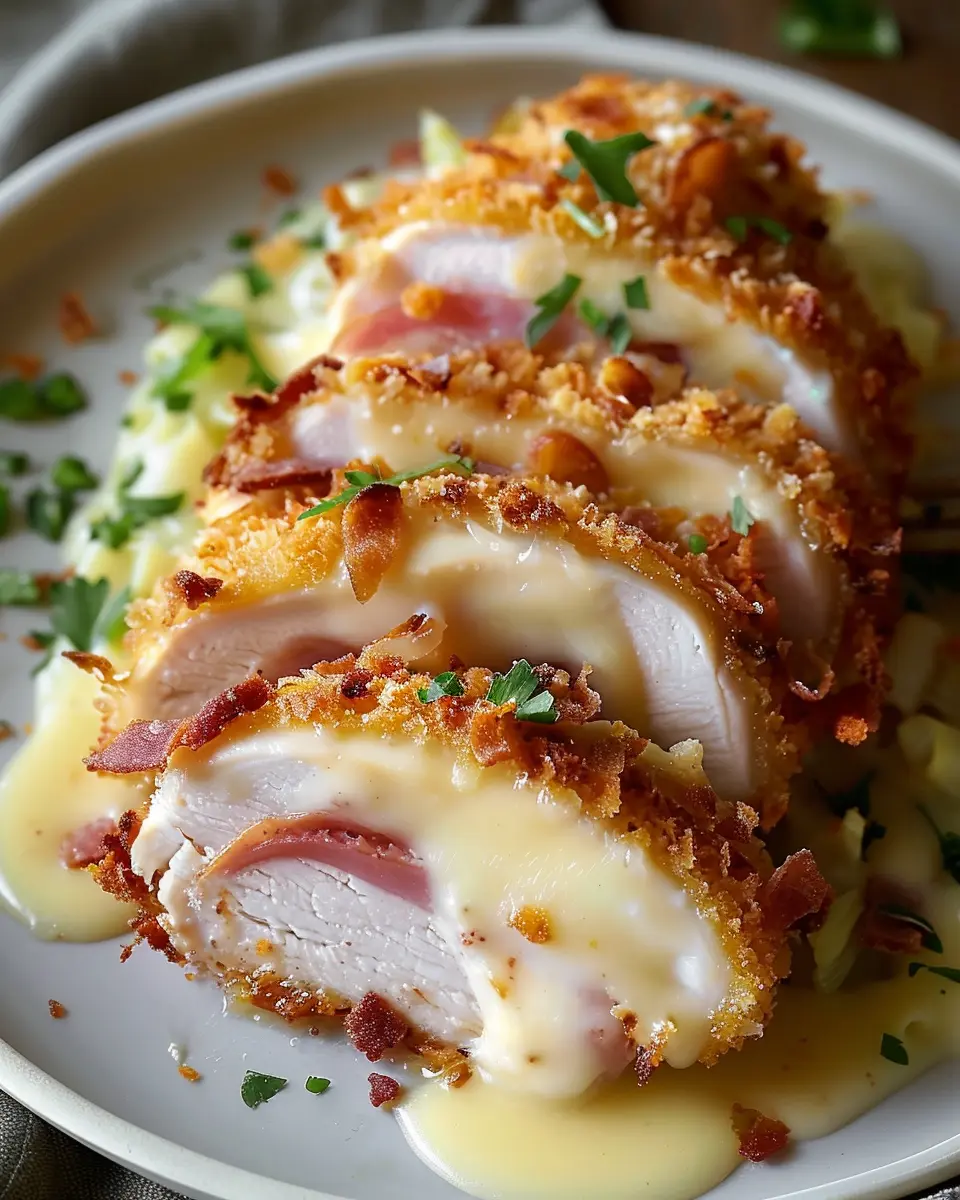 If you’re looking to mix things up with your traditional Chicken Cordon Bleu, consider swapping in Turkey Bacon. This variation not only adds a delightful twist but also lightens the dish while still providing that savory, smoky flavor we all love. Simply replace the classic chicken ham with a layer of turkey bacon in your recipe. This works beautifully in the breadcrumb coating, creating an airy crunch when baked or fried to perfection.