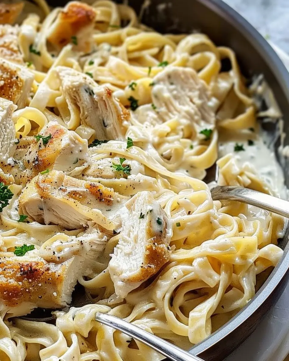 In summary, Chicken Fettuccine Alfredo is not just a dish; it’s an experience, a comforting classic that brings joy to any table. The creamy sauce, combined with tender chicken and perfectly cooked fettuccine, makes for a delightful meal that you can whip up on a busy weeknight or serve at a dinner party.