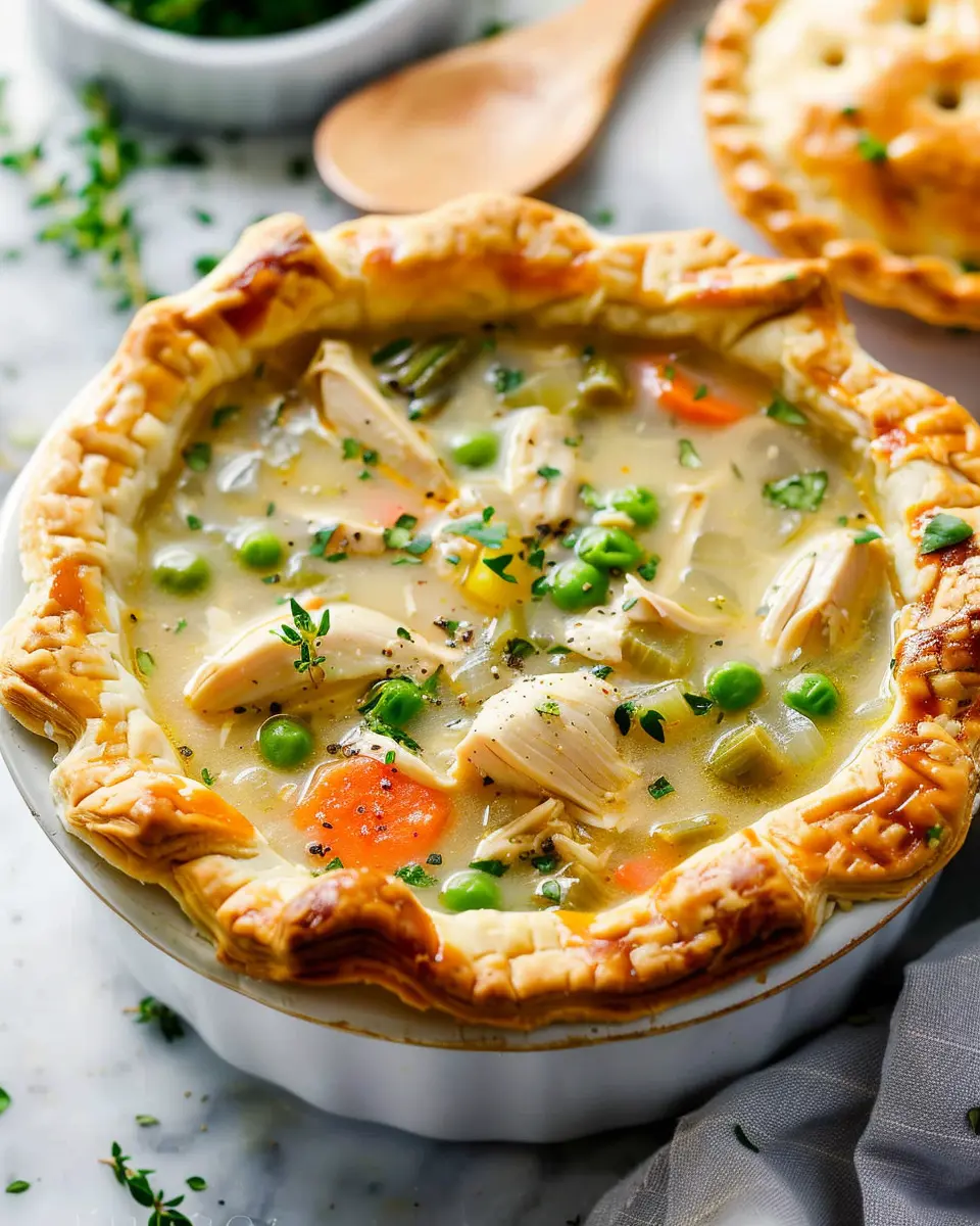 Chicken pot pie soup is made by simmering tender chunks of chicken, vegetables, and spices in a creamy broth. Many recipes today opt for alternatives like Turkey Bacon or Chicken Ham to add a rich, smoky flavor, while keeping the dish lighter and healthier. It’s a great way to enjoy a nutritious meal, with studies showing that chicken can be a fantastic source of protein and a mood booster due to its high Vitamin B6 content.
