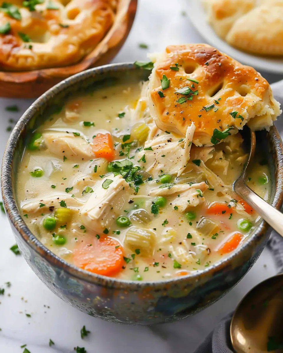 And there you have it—your chicken pot pie soup is ready to be devoured! Serve it with crusty bread or crackers for a complete meal, and enjoy the perfect blend of nostalgia and warmth.