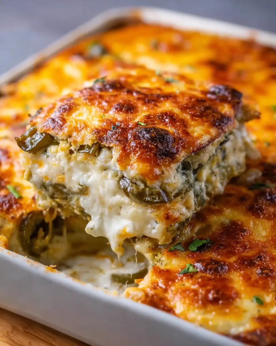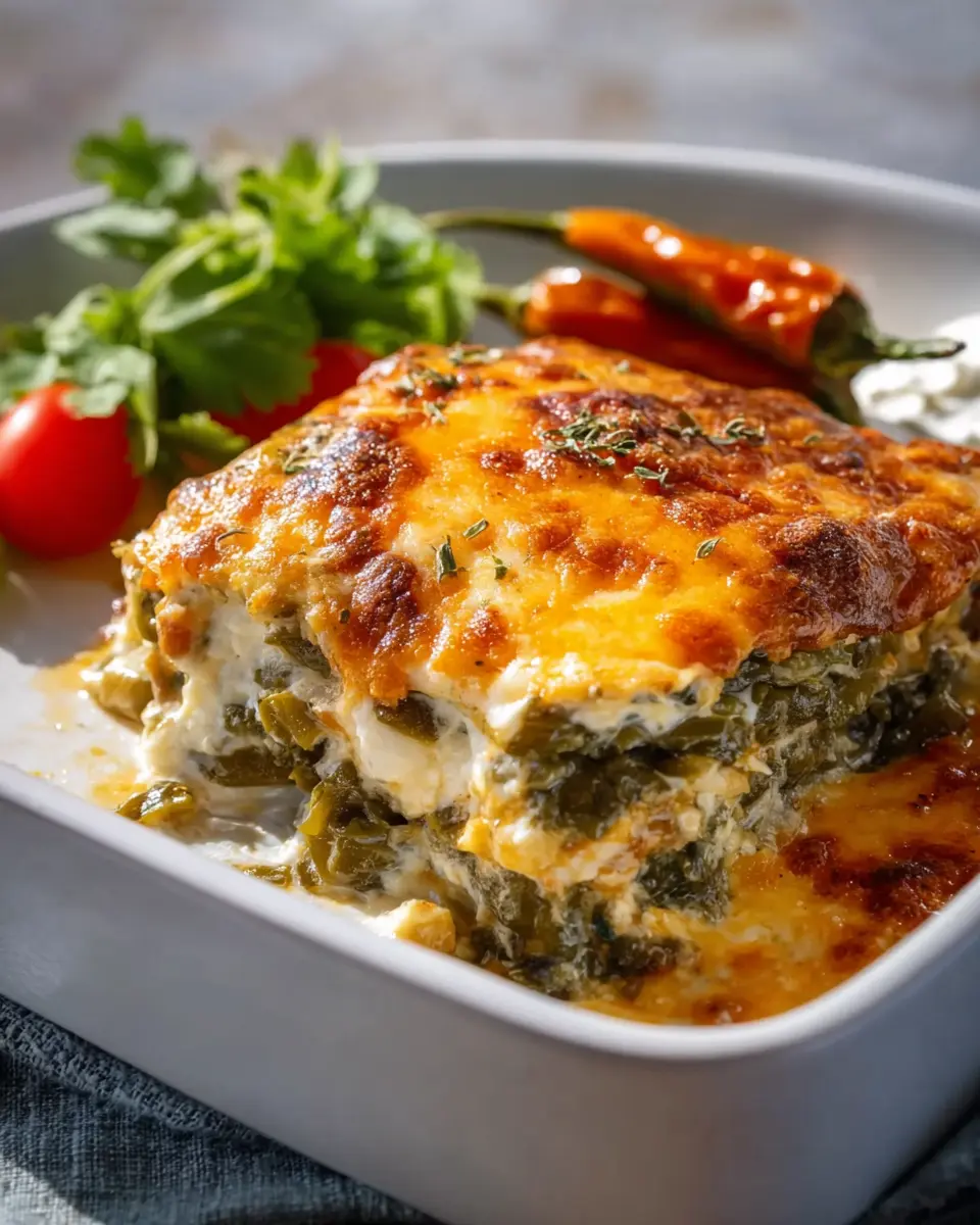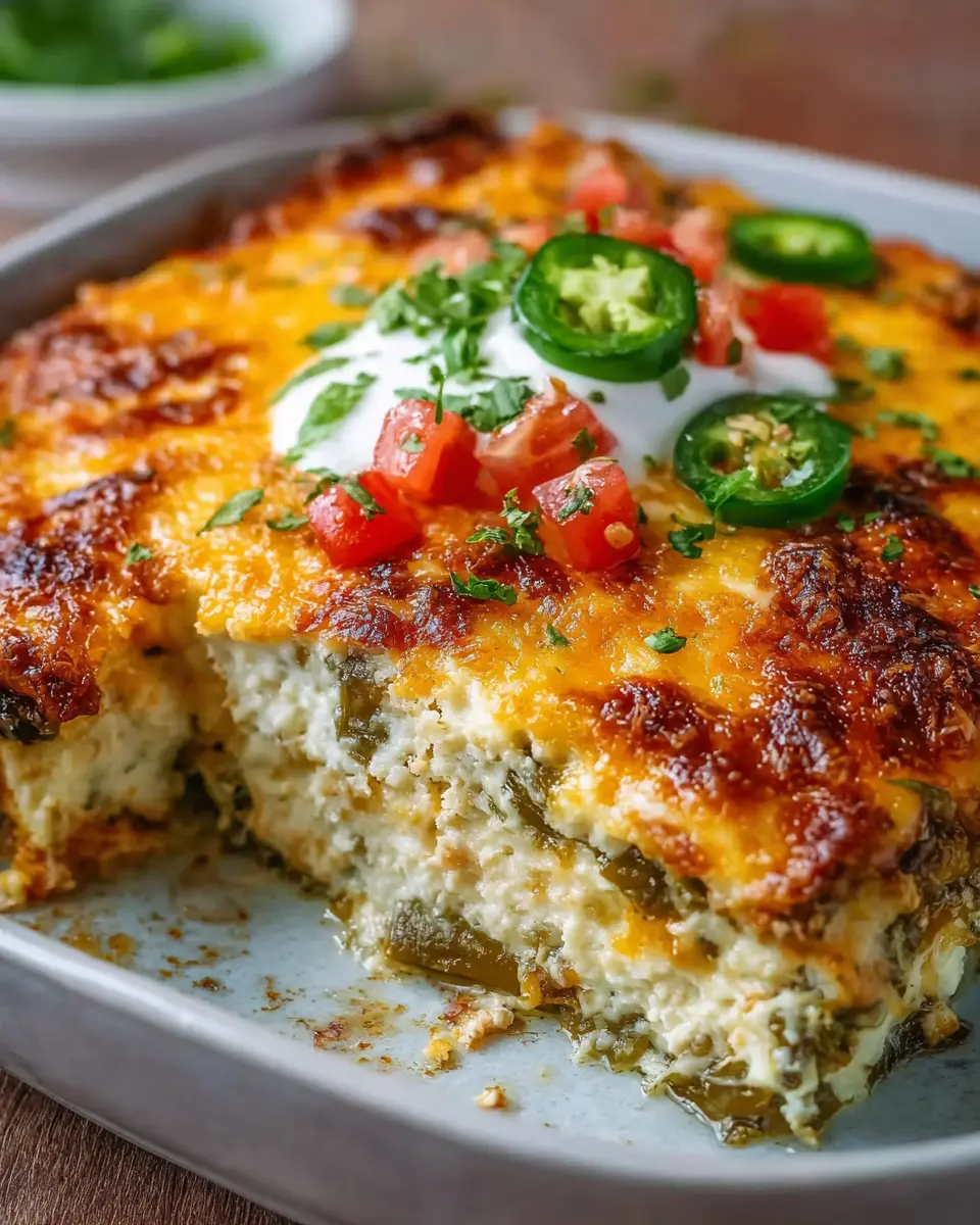Delight in a comforting, easy-to-make Chile Rellenos Casserole featuring turkey bacon for a leaner twist on a classic dish.