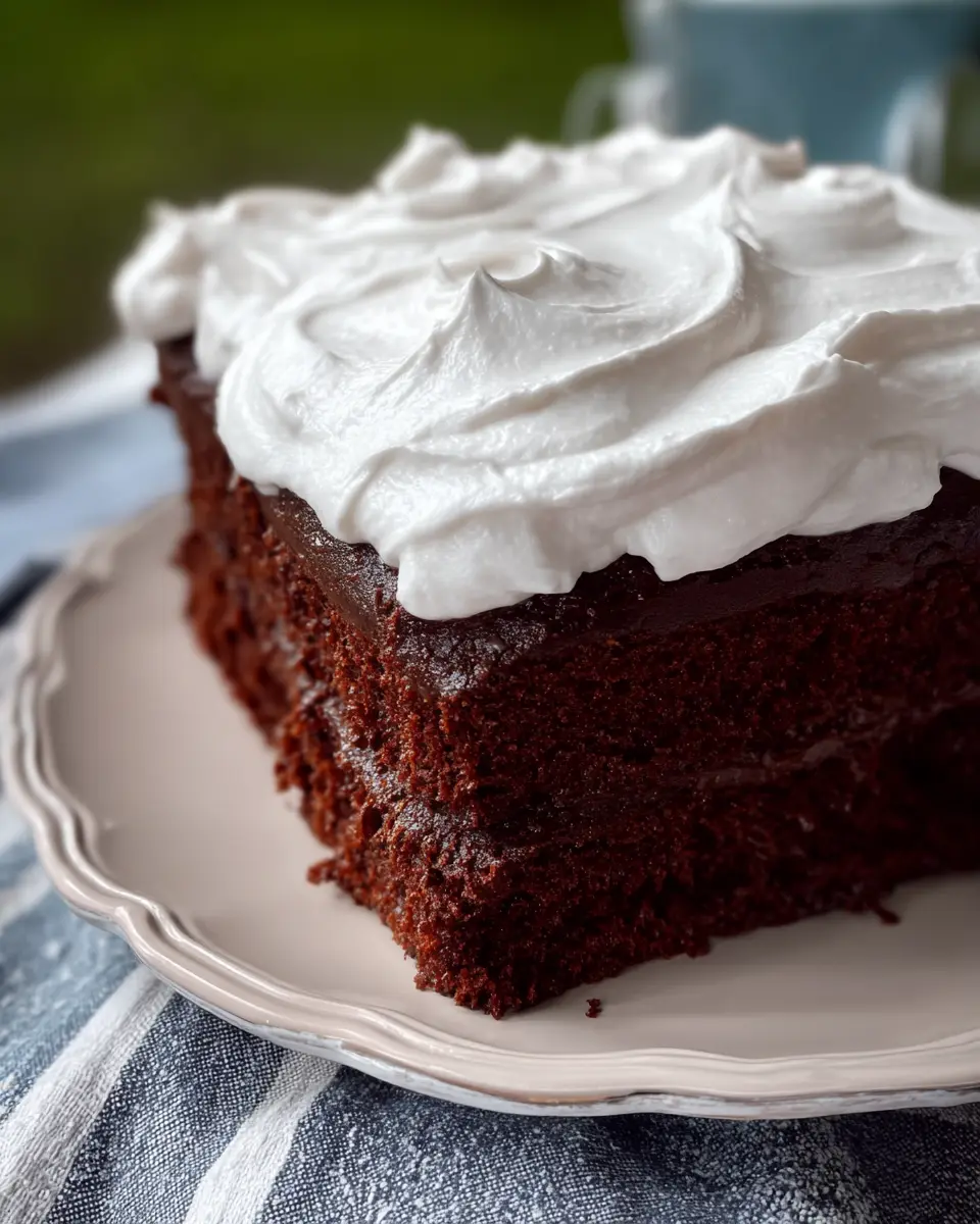 What sets this recipe apart is the addition of 7 Minute Frosting, a fluffy, meringue-like topping that pairs beautifully with the moist chocolate layers. Ever tried to incorporate a little nostalgia into your desserts? This frosting takes me back to my childhood—there’s something delightfully whimsical about its texture, like biting into a cloud of sweetness. It’s easy to whip up and perfect for those days when you want an impressive dessert without too much fuss.