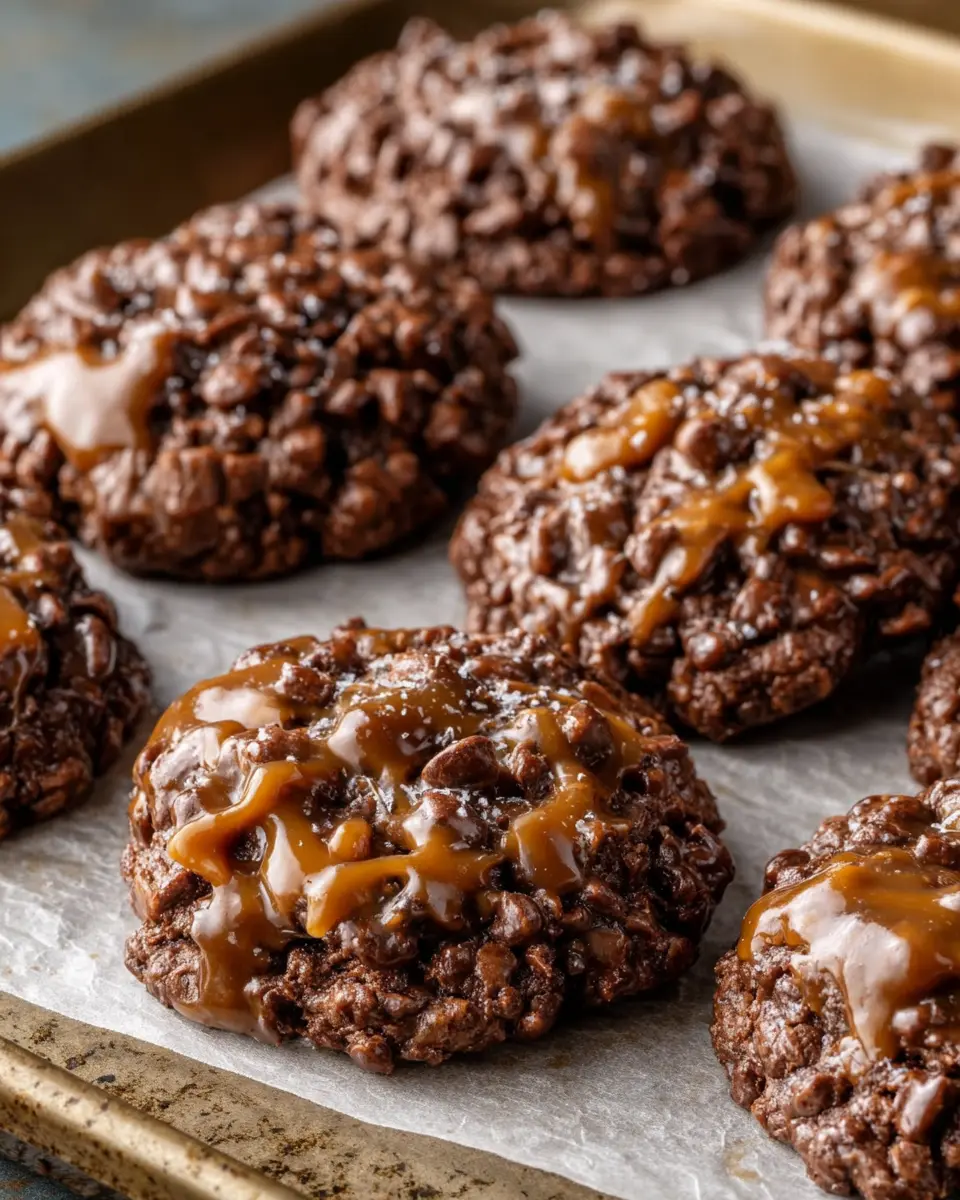 Visual Appeal: Let’s be honest—food that looks good is even more appetizing. The glossy caramel drizzle on top, alongside toasty bits sprinkled throughout, makes Chocolate Caramel Crunch Cookies a feast for the eyes. Presentation can elevate a homemade treat into something truly special, whether you’re serving them at a dinner party or simply indulging at home.