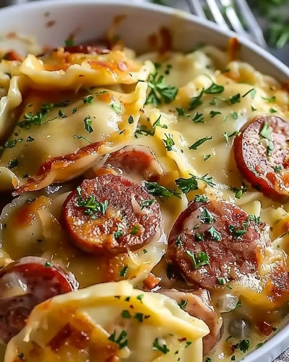 PrintClassic Crockpot Pierogi Casserole with Kielbasa: Easy Comfort Food