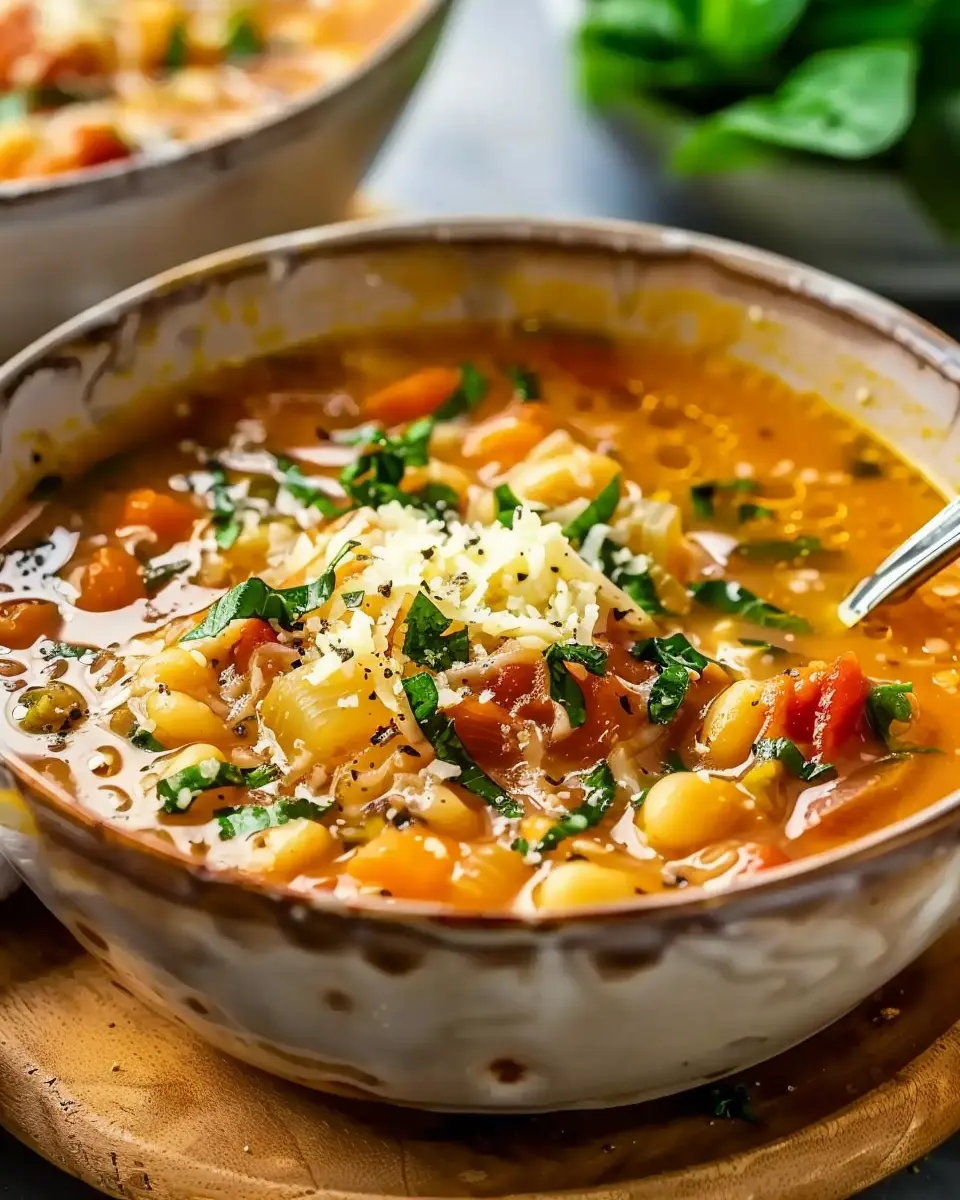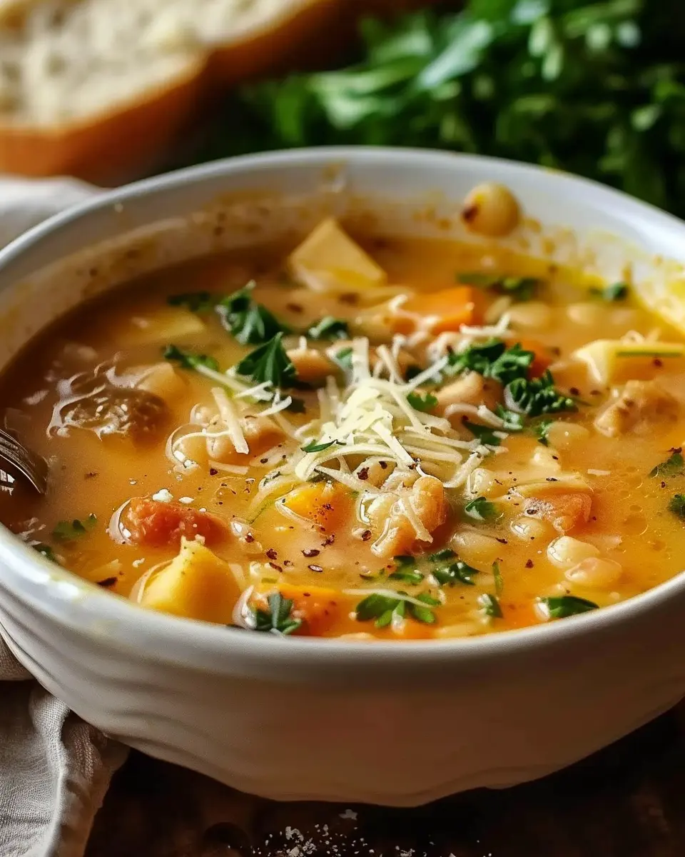 A warm and nourishing soup that blends traditional Italian flavors with healing properties to provide comfort and revitalization.