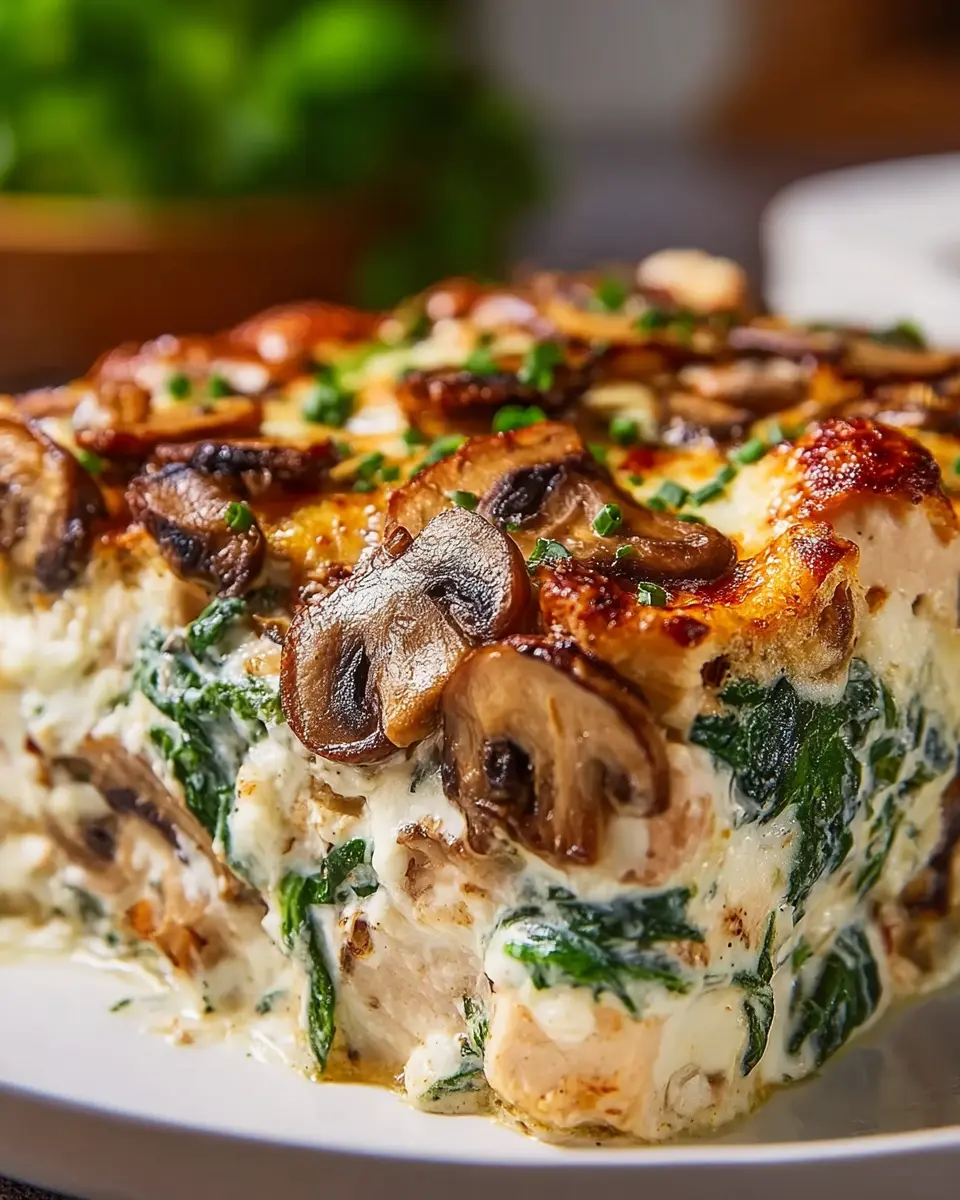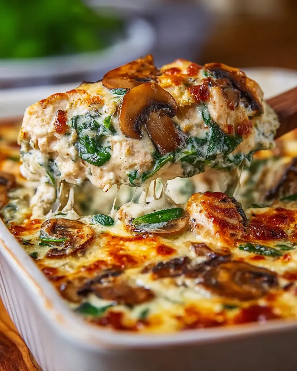 Cowboy Creamy Chicken Spinach and Mushroom Bake