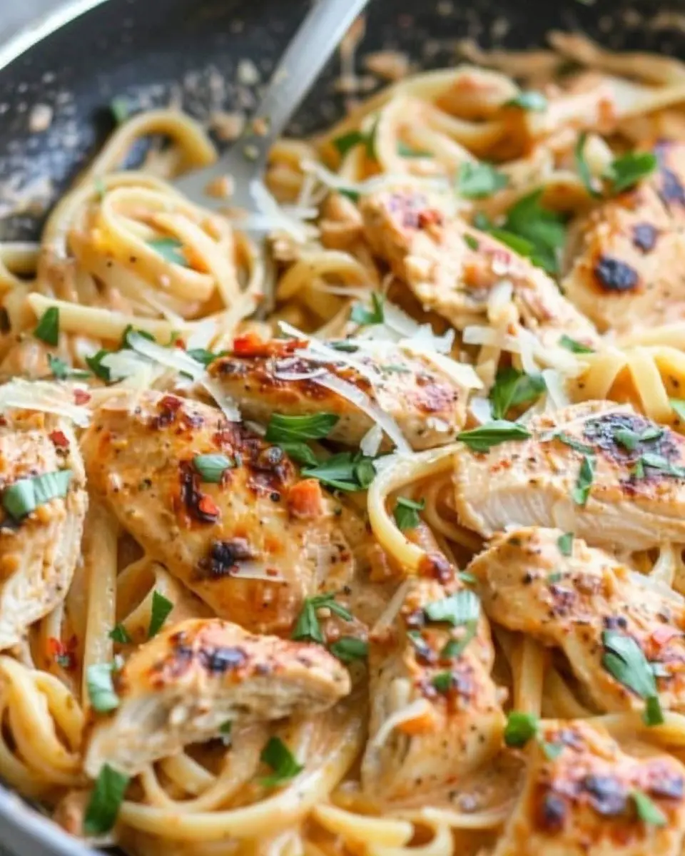 At this point, it’s time to bring it all together! Add your cooked pasta and cooked chicken back into the skillet, tossing everything well to ensure that every noodle is coated in your creamy Cajun sauce. If you feel like it needs a bit more punch, don’t hesitate to sprinkle in additional Cajun seasoning. To finish, garnish with fresh parsley or green onions.