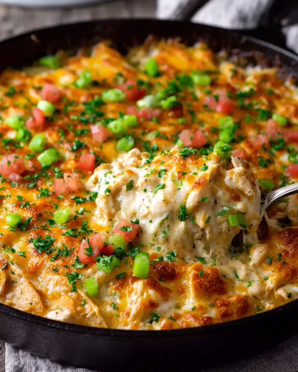 A delightful and easy-to-make creamy chicken tortilla skillet bake that brings comfort food to your table.