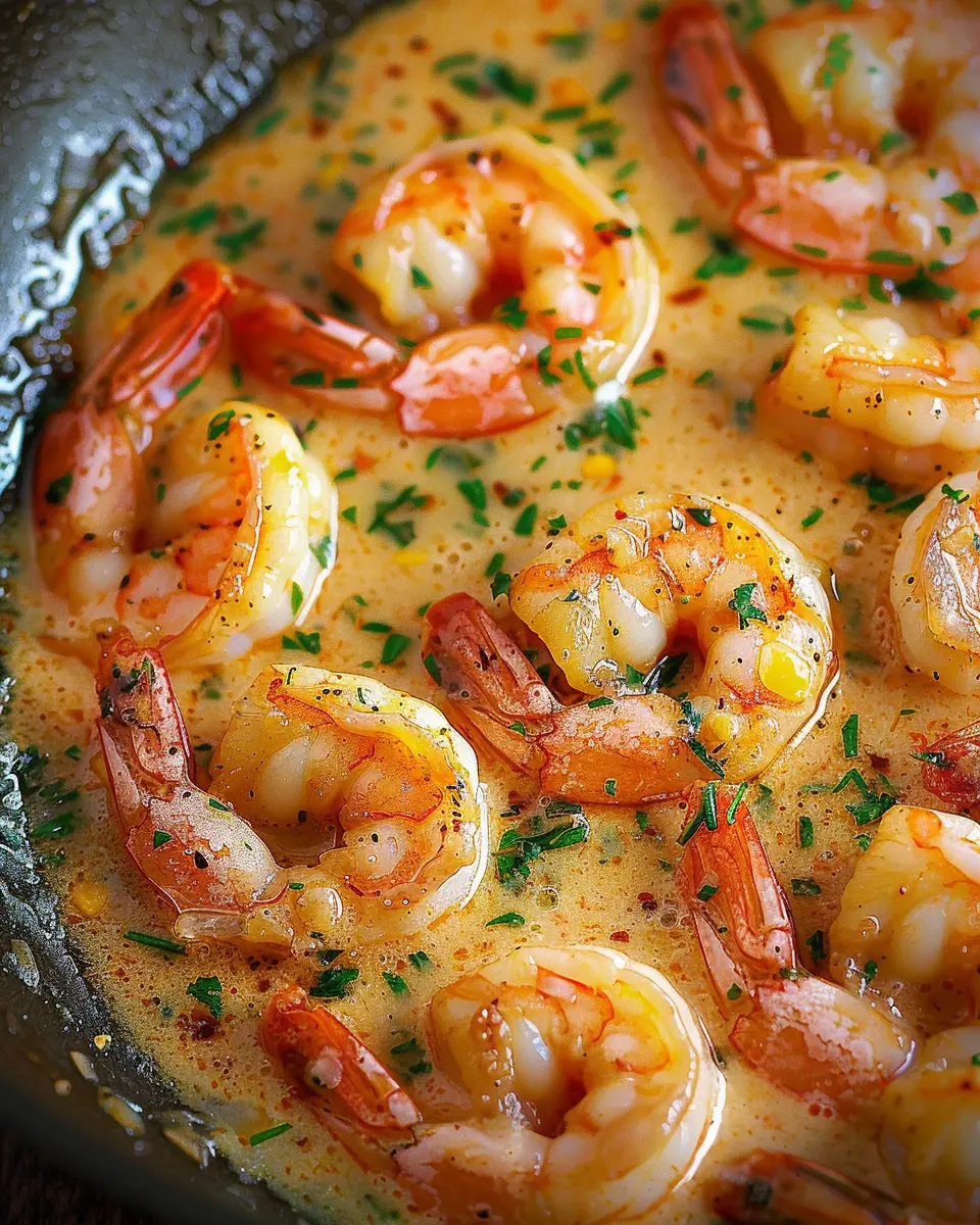 A quick and delightful creamy garlic shrimp dish that you can prepare in just 15 minutes, perfect for a weeknight dinner.