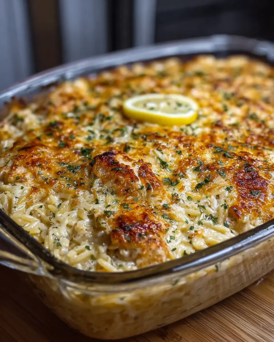 PrintCreamy Lemon Chicken Orzo Bake: A Comforting Family Favorite