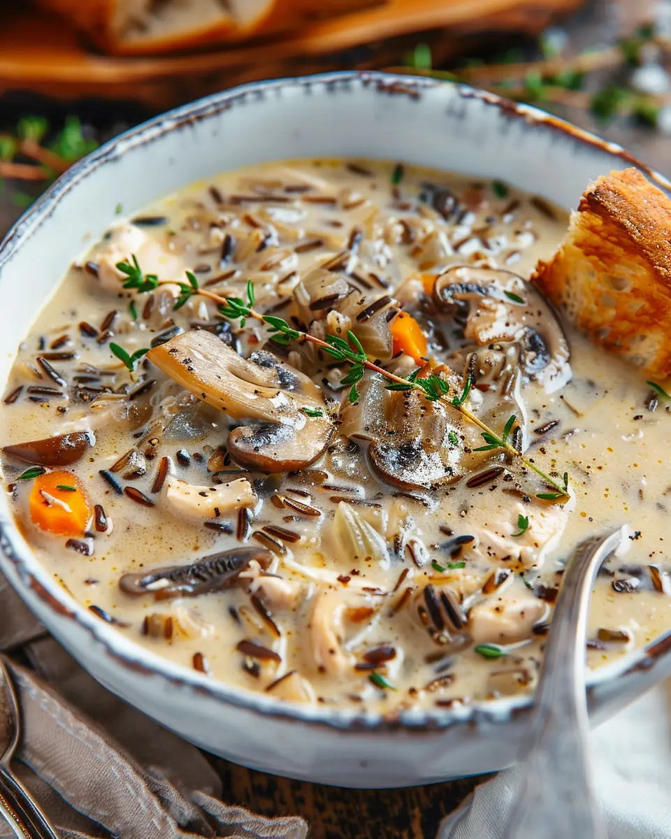 PrintCreamy Mushroom Chicken Soup: Indulgent Wild Rice Delight