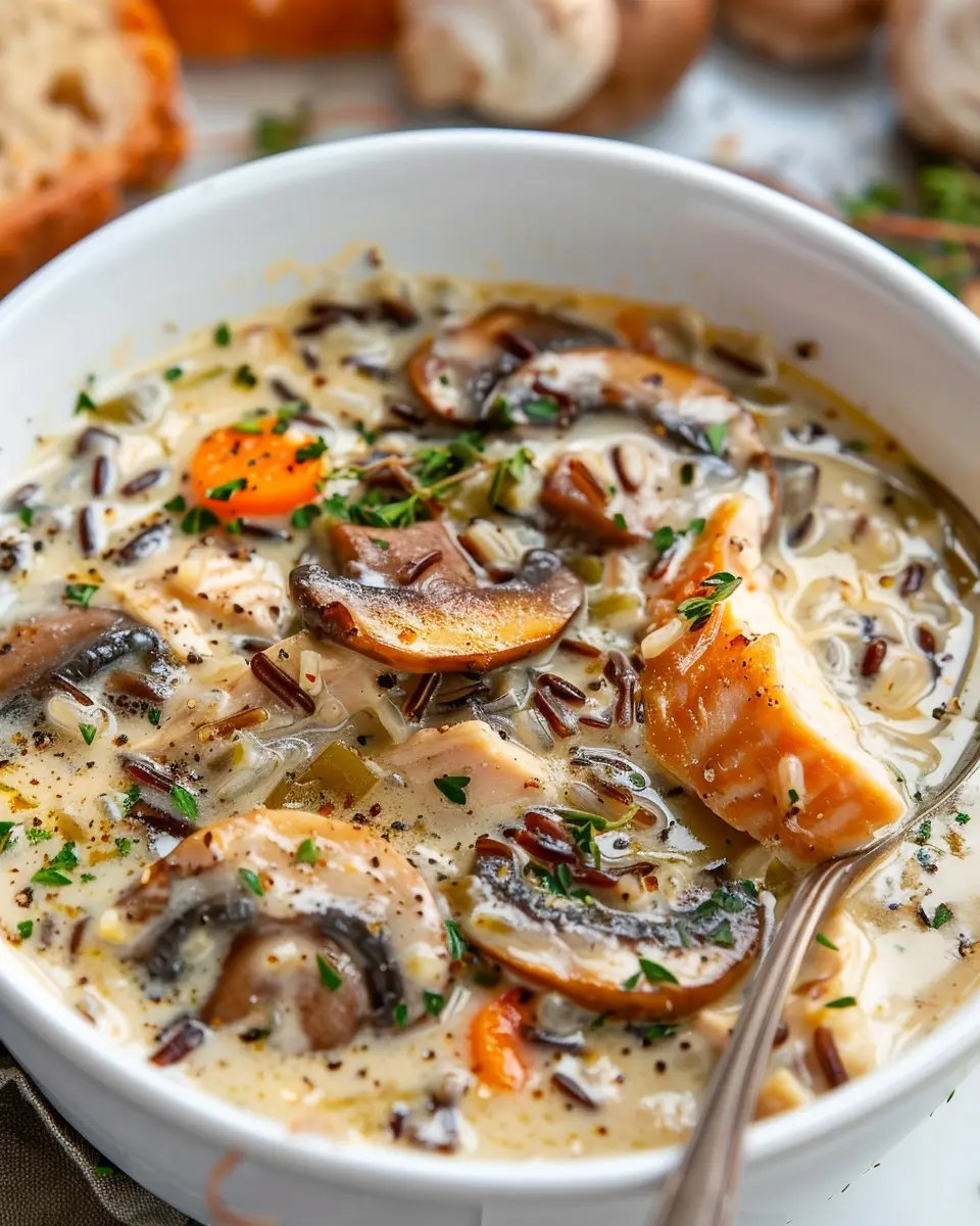 Keywords: Creamy Mushroom Chicken and Wild Rice Soup