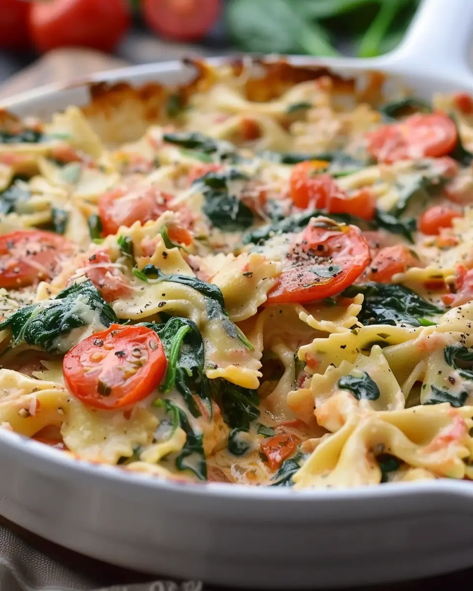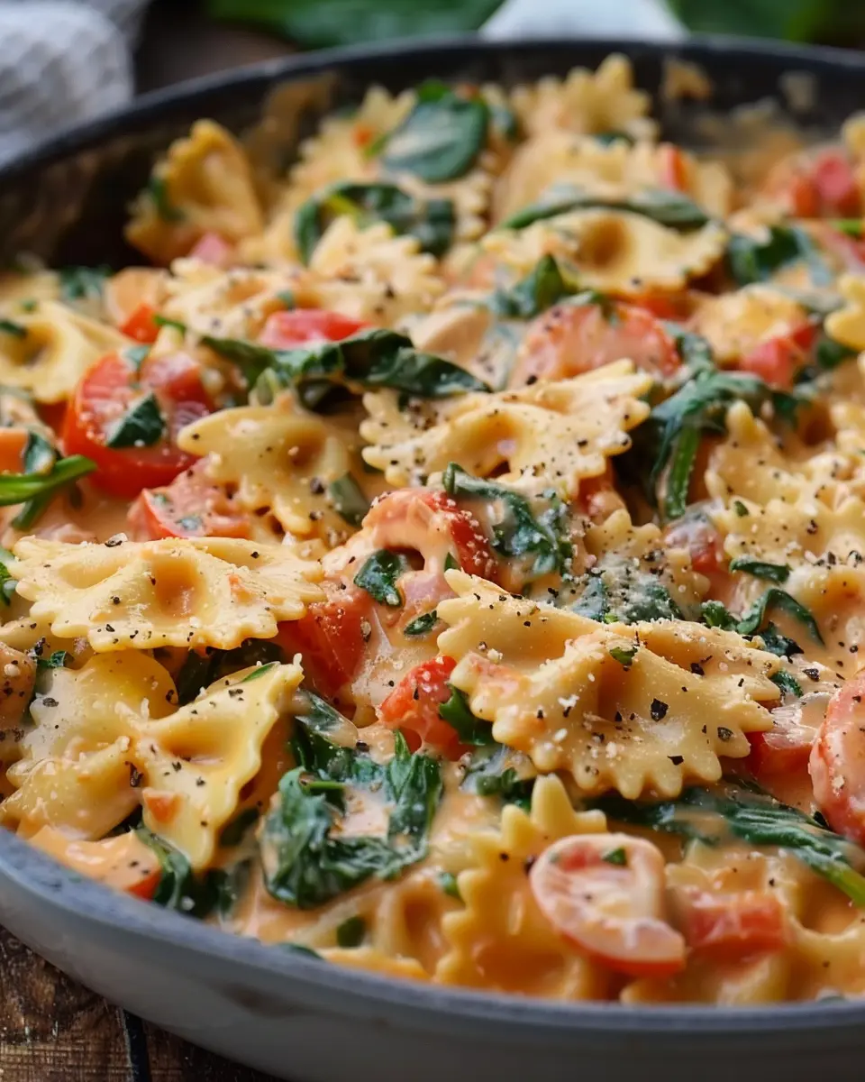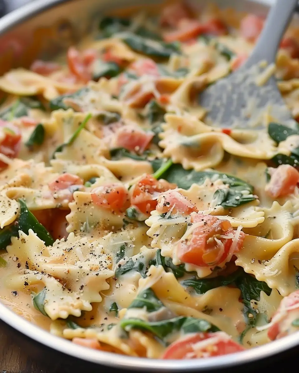 Keywords: Creamy Spinach and Tomato Bowties, pasta recipe, easy comfort food