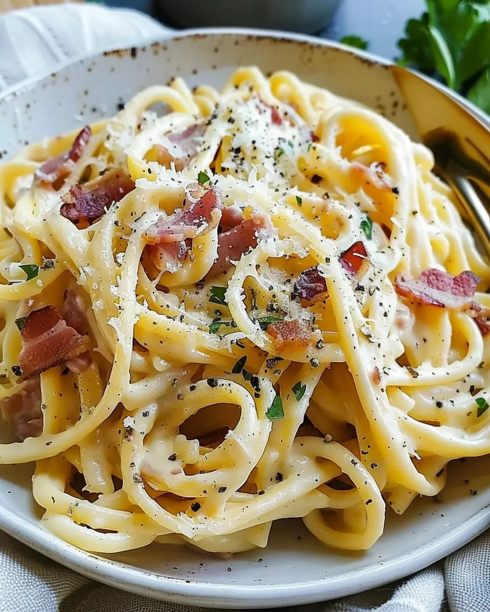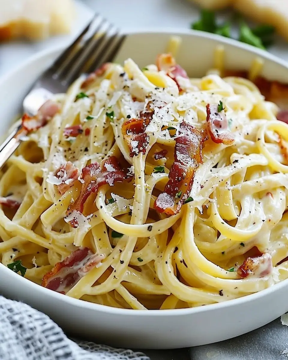 PrintCreamy Turkey Bacon Carbonara Pasta: An Easy Gourmet Delight