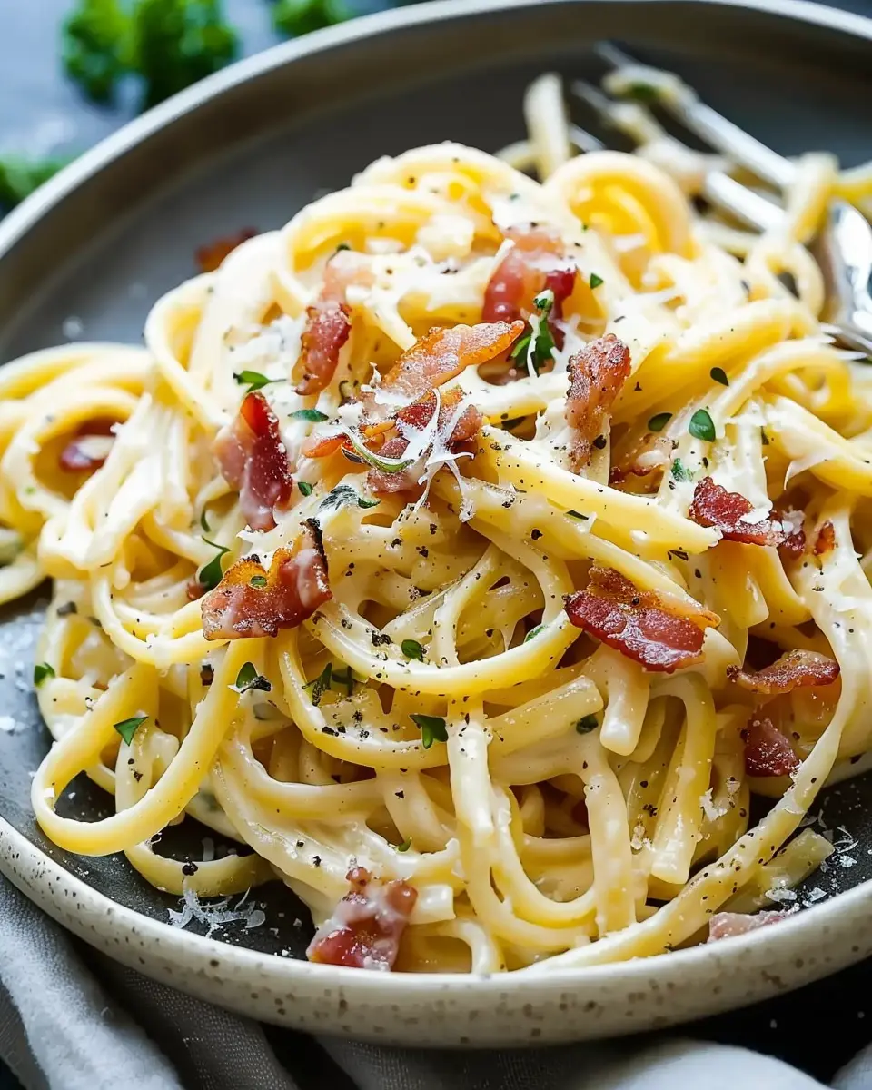 A rich and creamy bacon carbonara pasta dish that brings a touch of gourmet dining right to your kitchen.