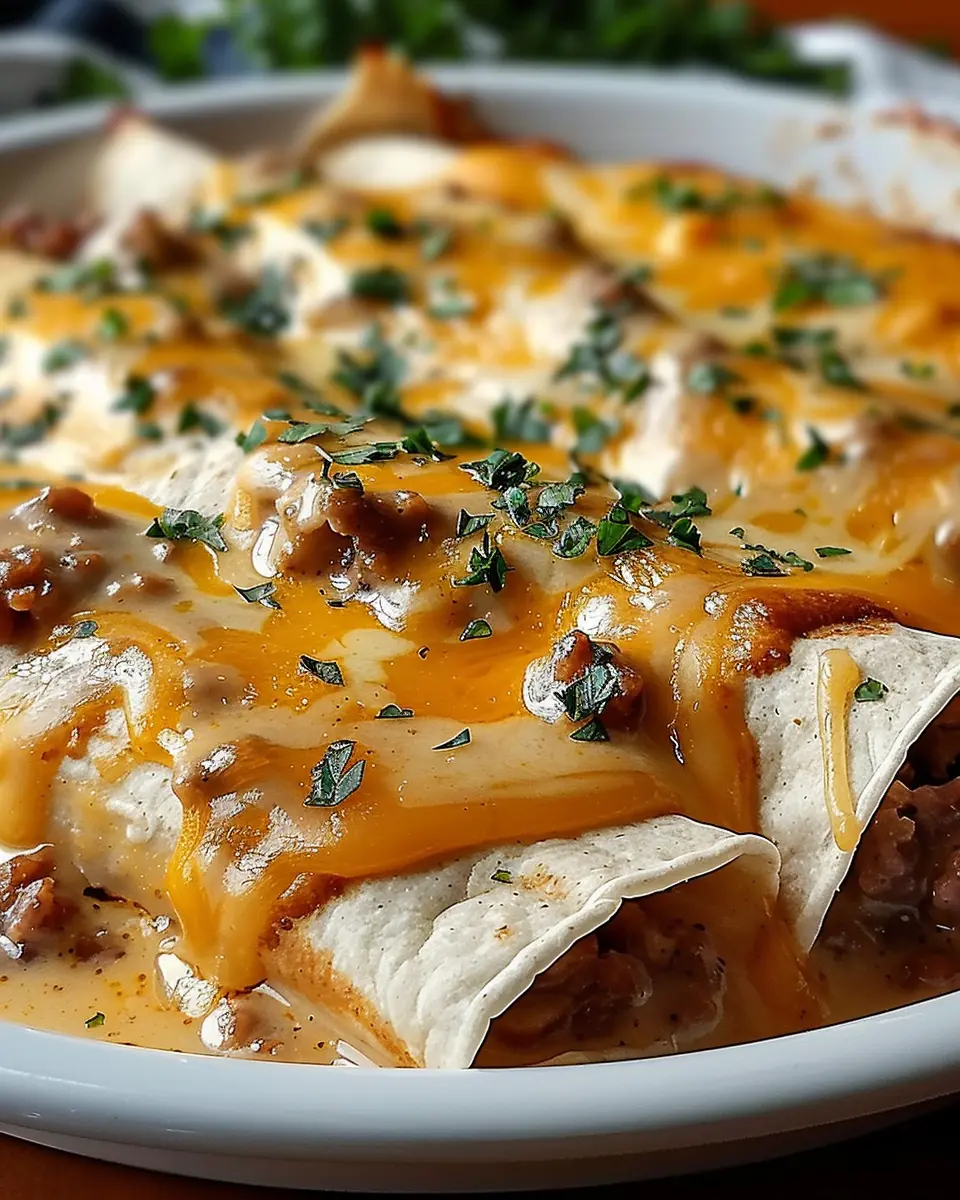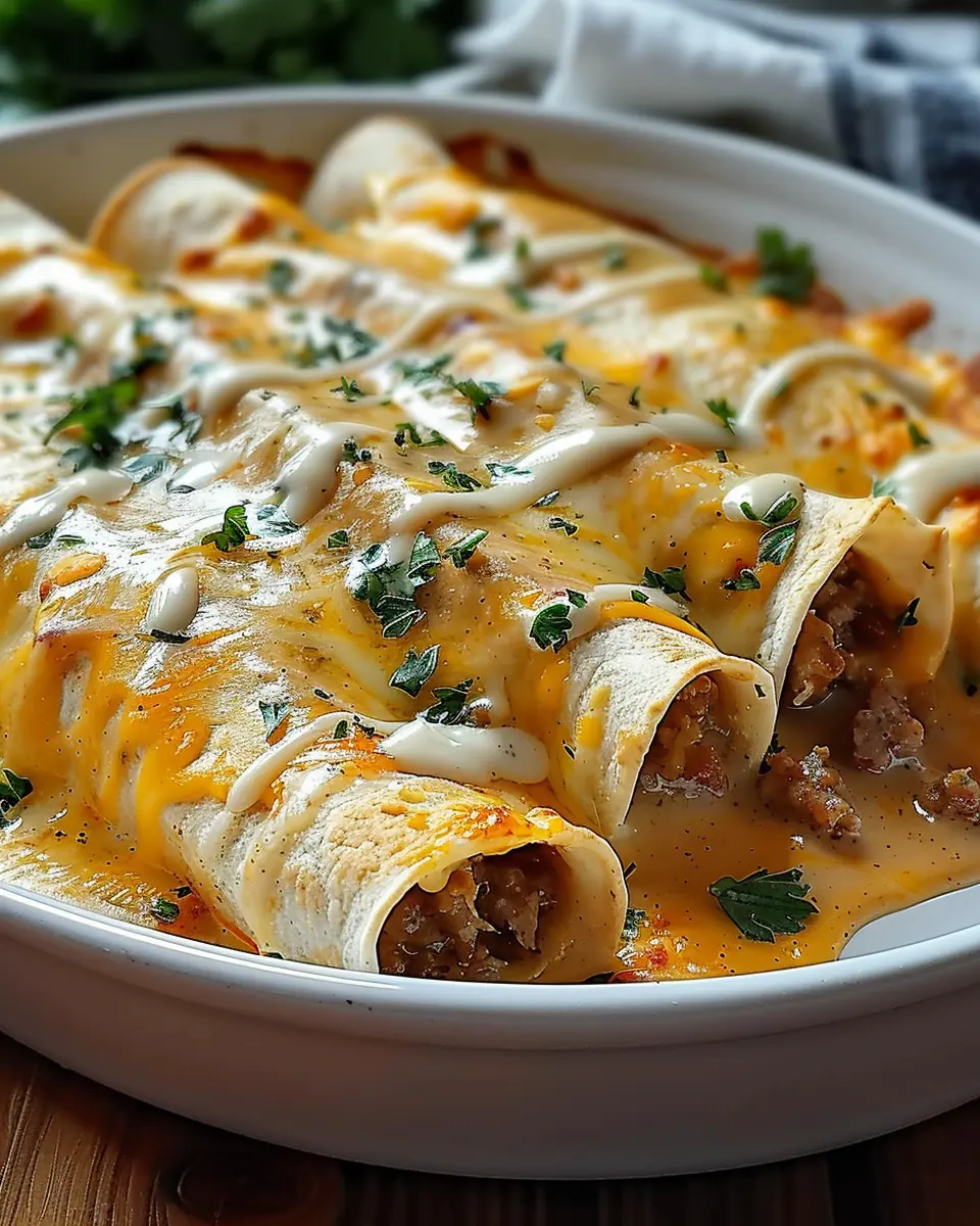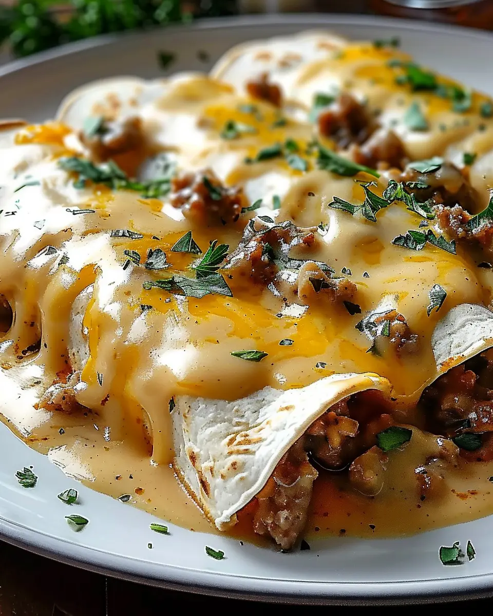 PrintDelicious Breakfast Enchiladas with Sausage Gravy Made Easy
