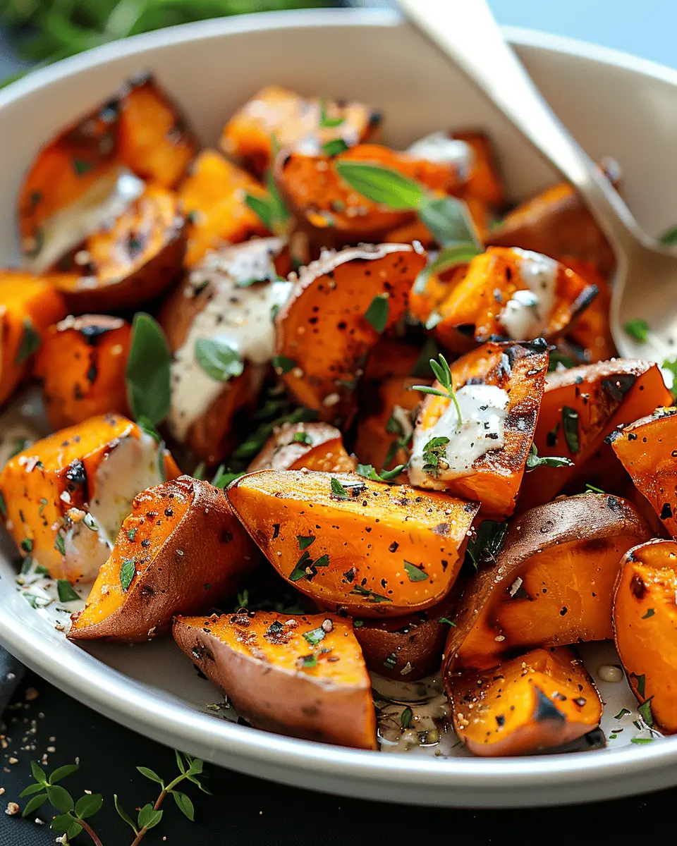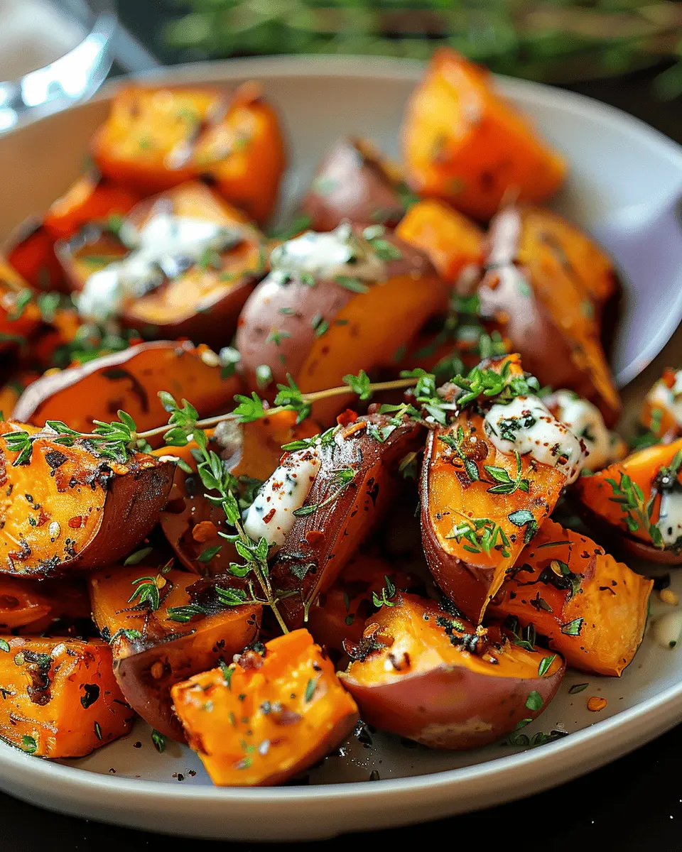 To design a Mediterranean-inspired plate, start with a generous scoop of your roasted sweet potatoes, adding a sprinkle of feta cheese and a dollop of tzatziki for creaminess. Add a refreshing salad made of diced tomatoes, cucumbers, and olives. This combination not only offers a feast for the eyes but bursts with vibrant flavors, ensuring every bite is an adventure.