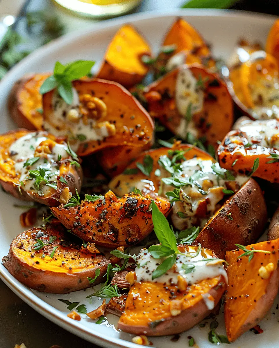 Finally, your masterpiece is nearly complete! After you remove the sweet potatoes from the oven, it’s time to garnish. Add a sprinkle of fresh parsley or additional herbs for a burst of color and freshness. A drizzle of high-quality balsamic glaze can also elevate the dish, giving it a delicious tang. And voila! You now have a plate of delicious Mediterranean sweet potatoes that’s ready to impress.