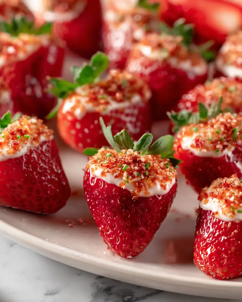 Keywords: Deviled Strawberries, sweet treats, savory snacks