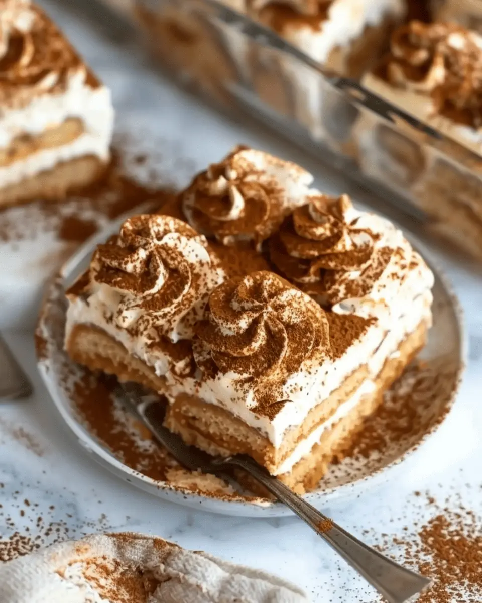 Once assembled, the tiramisu should chill in the fridge for at least 4 hours, allowing those wonderful flavors to meld together beautifully. If you can wait longer, ideally let it set overnight!
