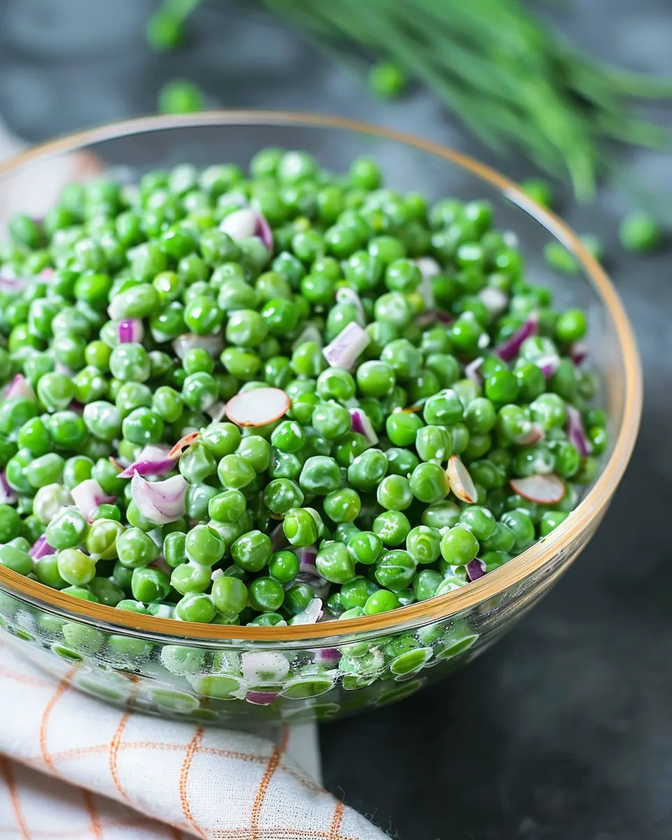 For a richer, creamier dressing, consider adding a dollop of Greek yogurt or sour cream. These ingredients not only enhance the creaminess but also add a delightful tang that complements the sweetness of the peas. If you want to mix it up, a splash of lemon juice can brighten the entire dish! Don’t forget to taste as you go; adjusting seasoning to suit your palate is key to the perfect salad.