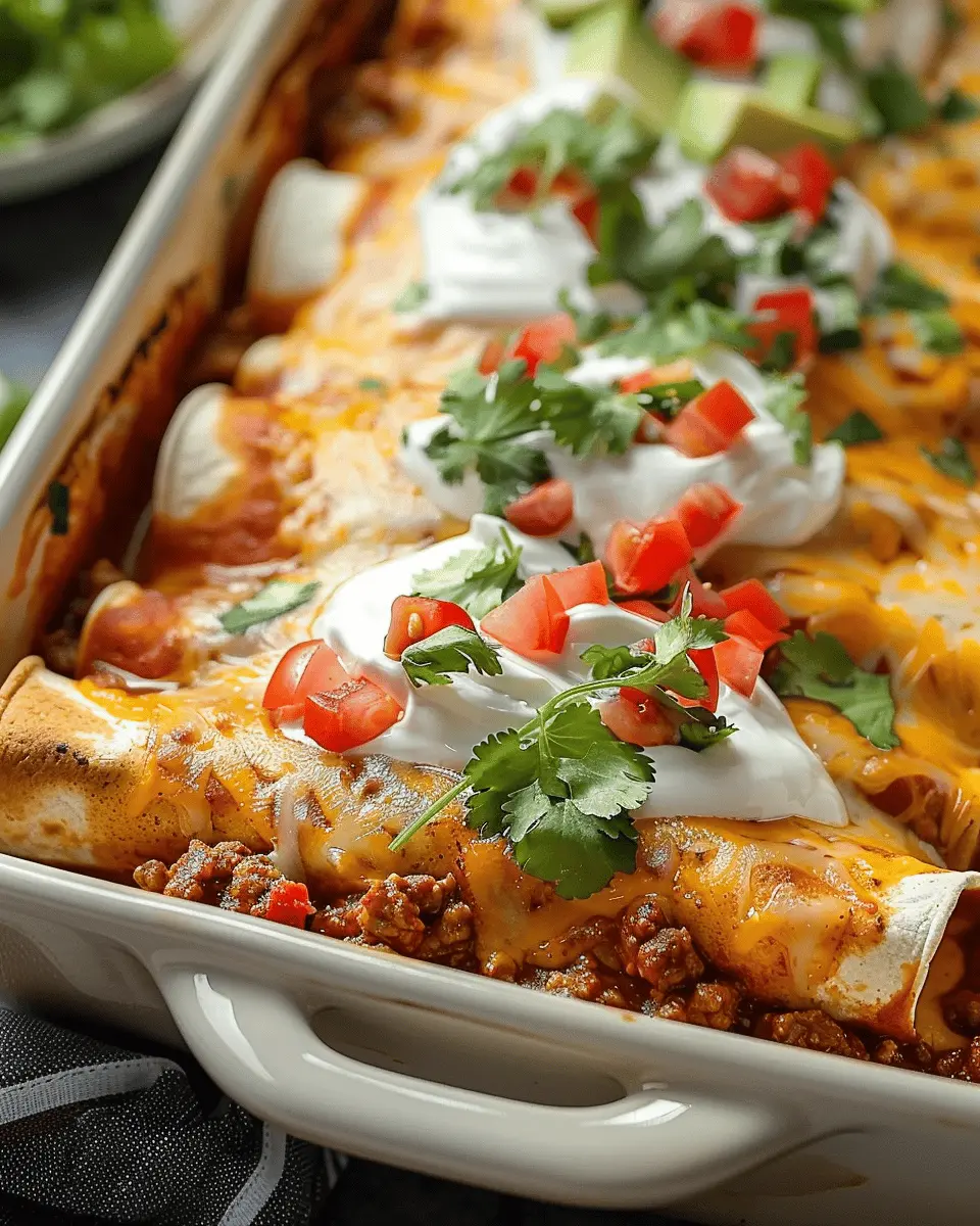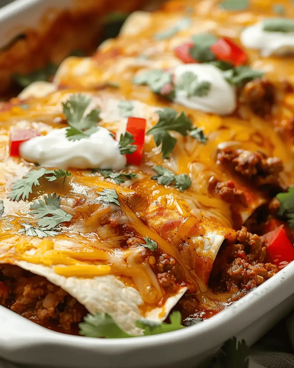 These easy ground beef enchiladas are not just delicious; they also offer an incredible balance of flavors and textures. With minimal preparation and cooking time, they’re the perfect dish for busy weeknights or casual gatherings. Plus, they can easily be customized with your favorite toppings and ingredients, making them a versatile choice for any palate.