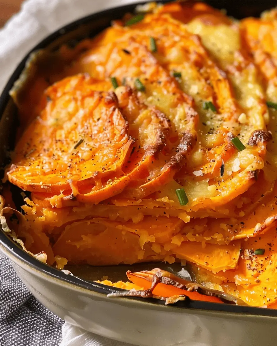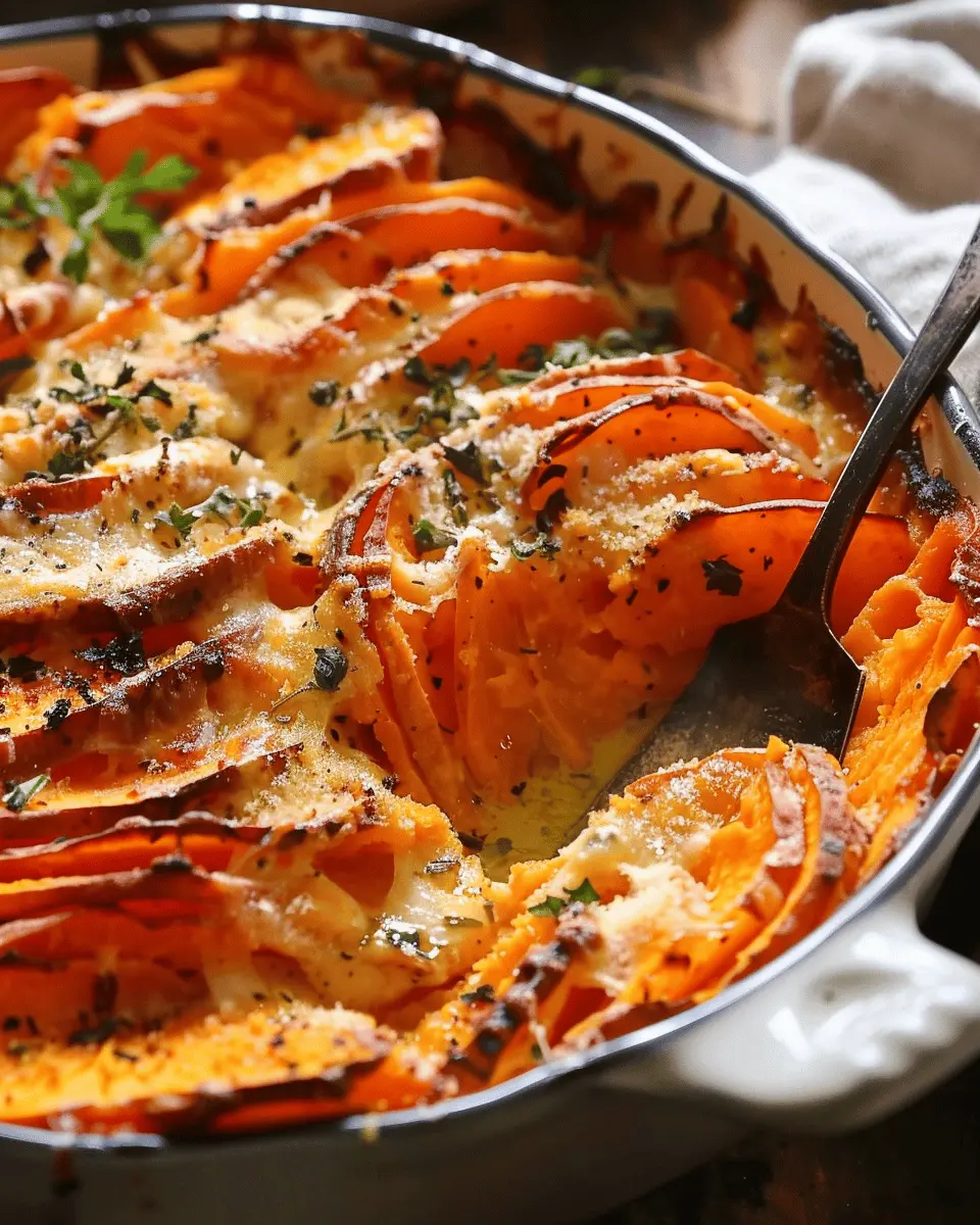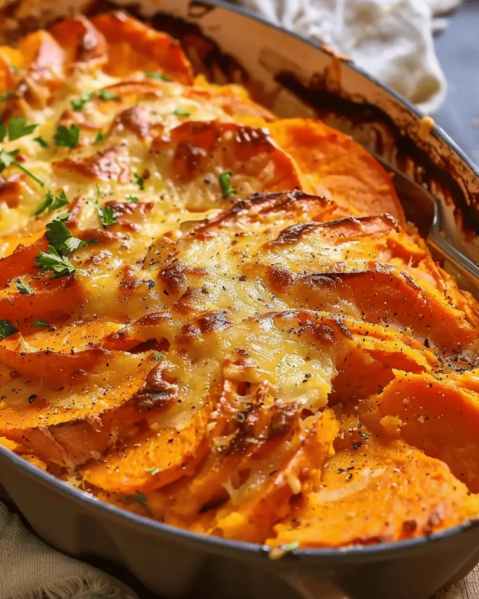 First off, let’s talk about the taste. Sweet potatoes are naturally sweet and creamy, and when baked with a blend of spices, cream, and cheese, they transform into something truly magical. Think about it: who wouldn’t want a crispy, cheesy topping to complement the rich, velvety layers underneath? Plus, sweet potatoes are a fantastic source of vitamins A and C, fiber, and antioxidants, making this dish not only delicious but also healthy.