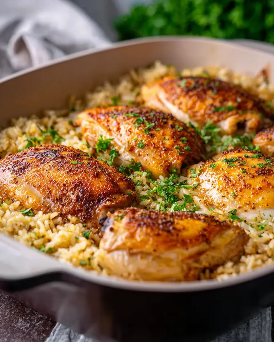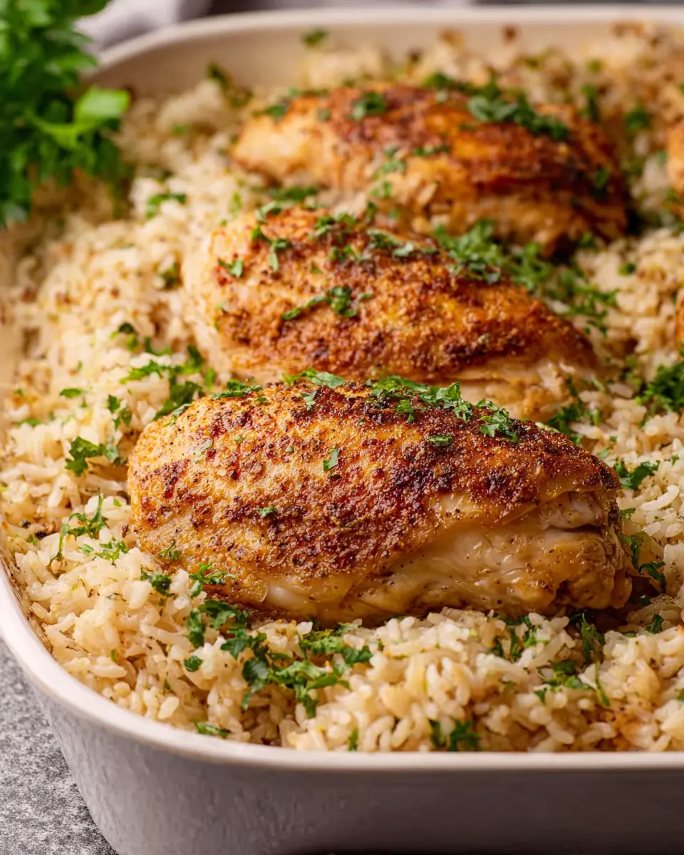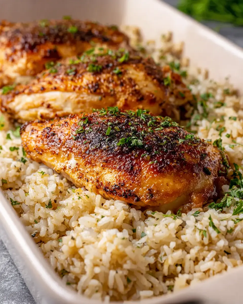 You’ll want to make sure the chicken is nestled snugly into the rice mixture but not submerged entirely. This will allow the chicken to cook through while keeping that beautiful crispy texture on top. Just imagine coming home to a warm, fragrant kitchen!