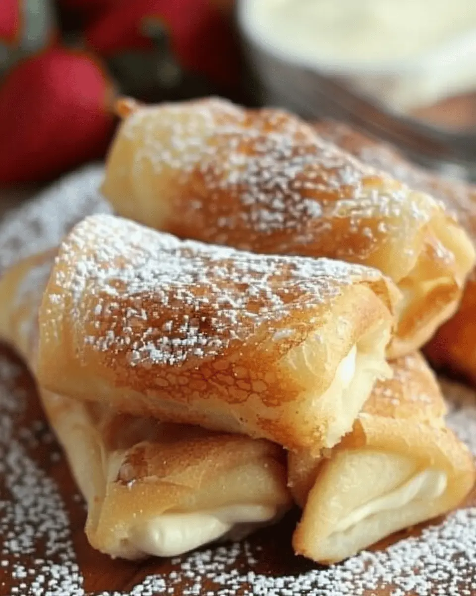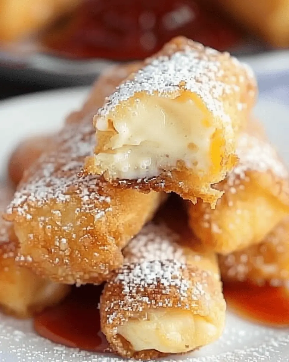 These Fried Cheesecake Rolls are a delicious and indulgent dessert that combines the creamy goodness of cheesecake with a crispy exterior, perfect for satisfying your sweet tooth.