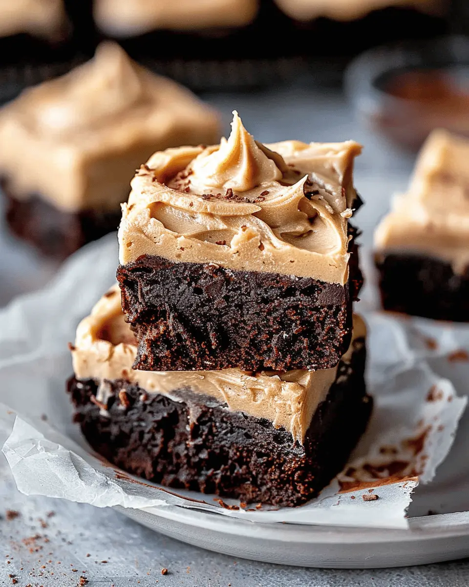 A delicious treat combining rich brownies with a coffee frosting, perfect for coffee enthusiasts.