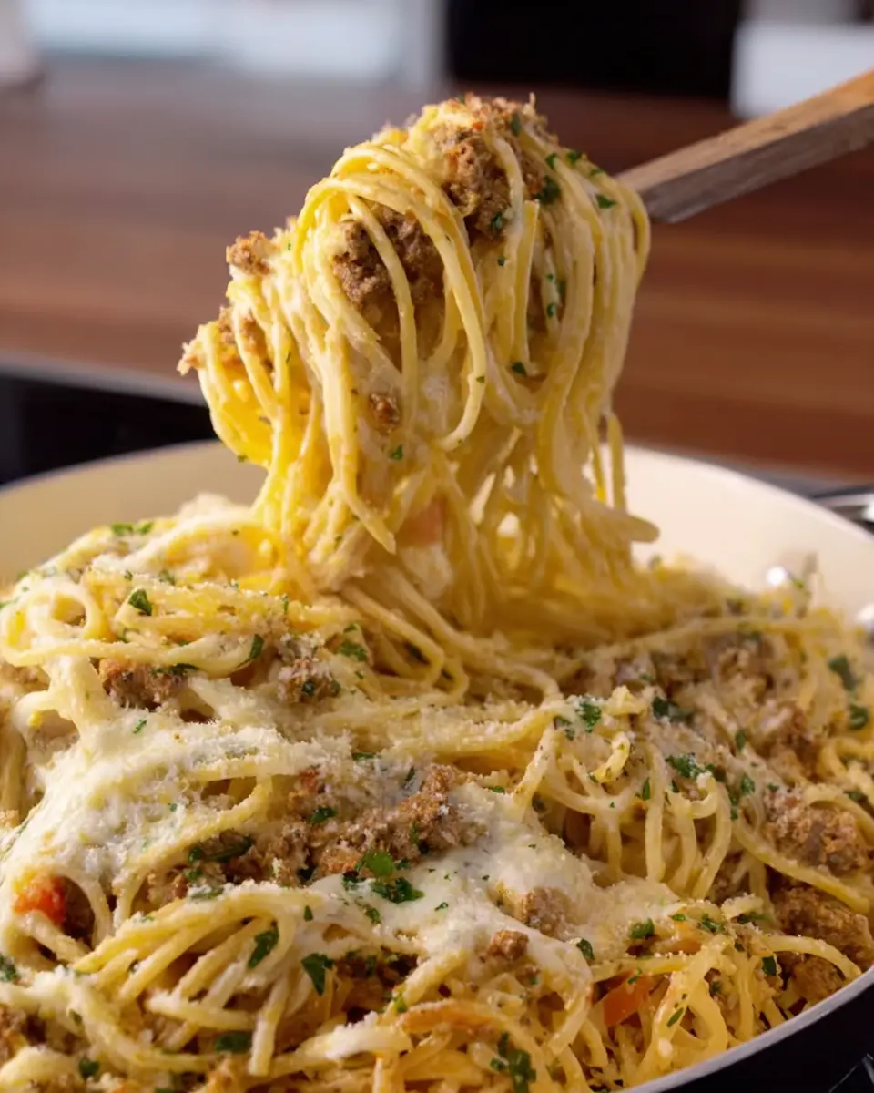 Keywords: Garlic Butter Beef Spaghetti, Creamy Cheddar Mozzarella Sauce, Spaghetti Recipe
