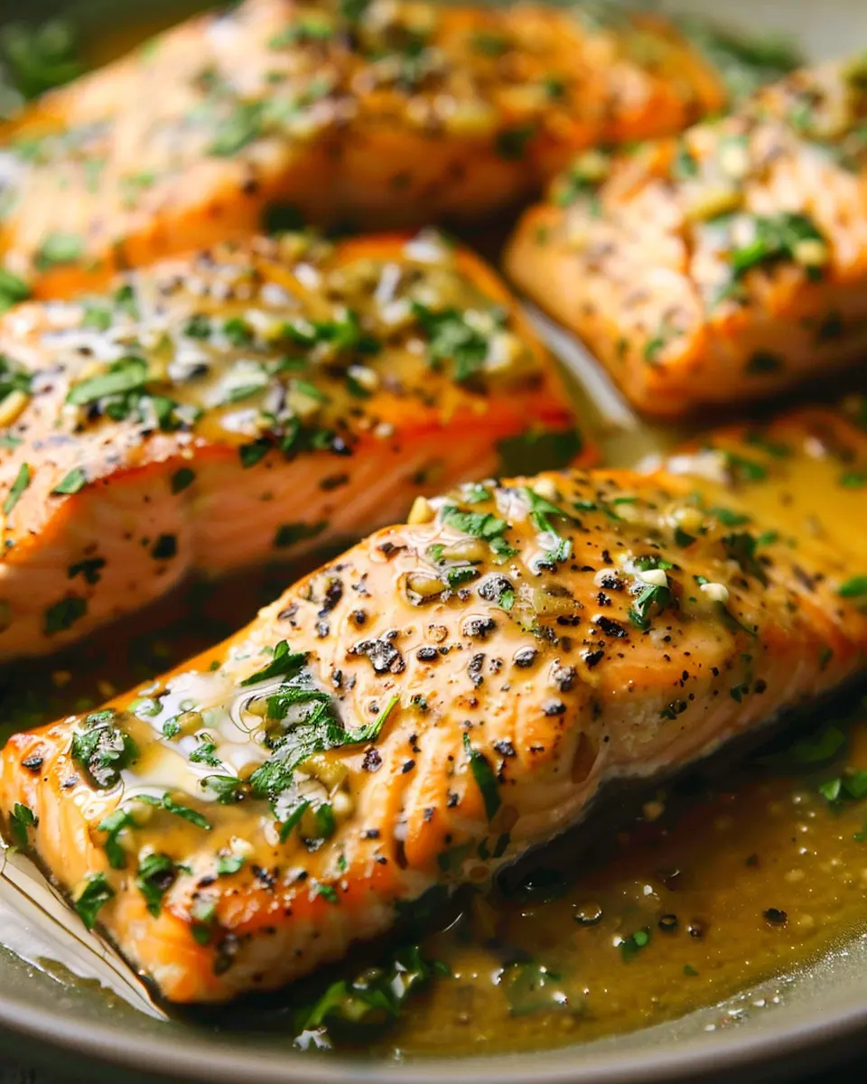 Once your salmon is perfectly cooked, carefully transfer the fillets to serving plates. Drizzle that rich garlic butter sauce generously over the top. The Garlic Butter Salmon is now ready to shine!