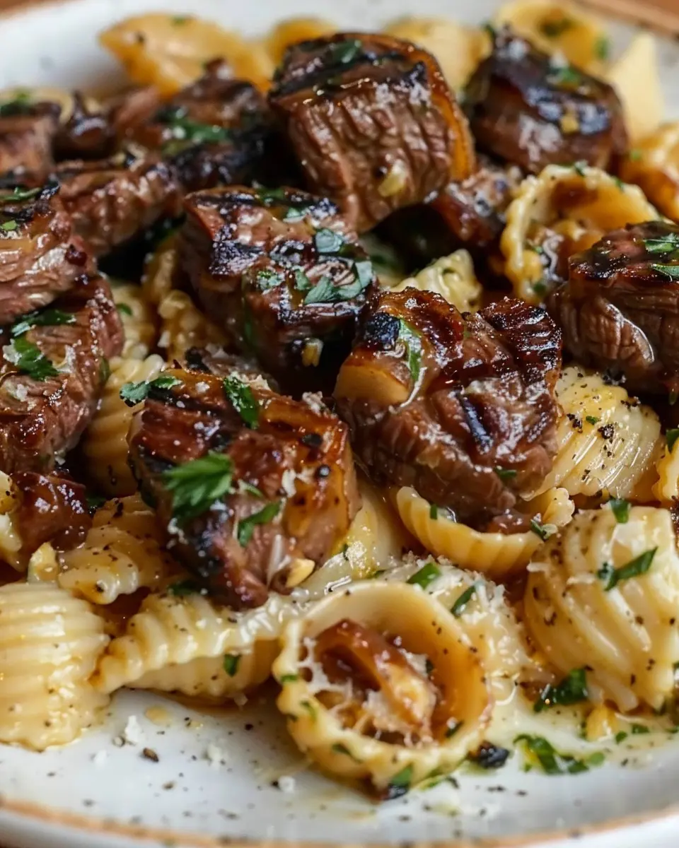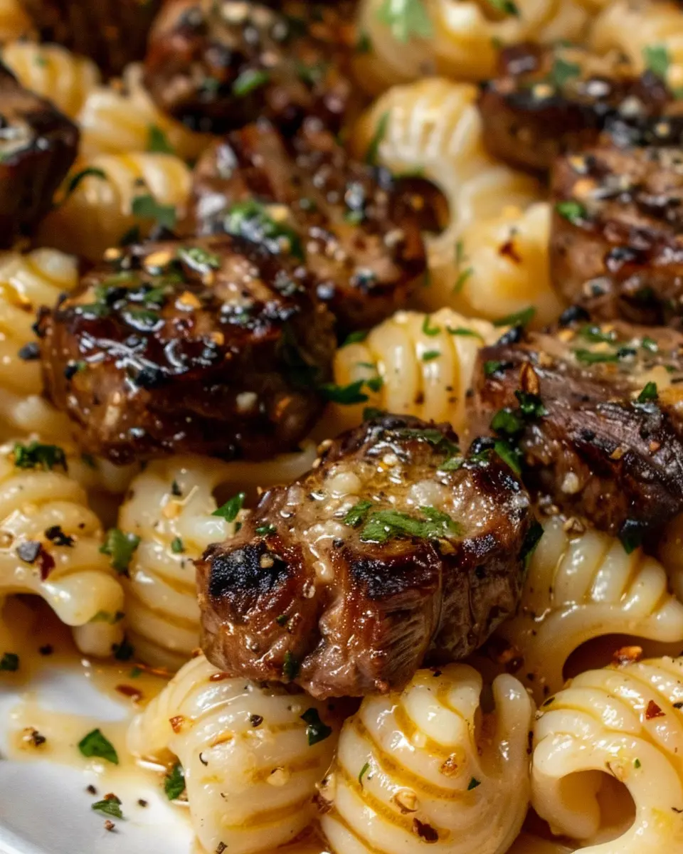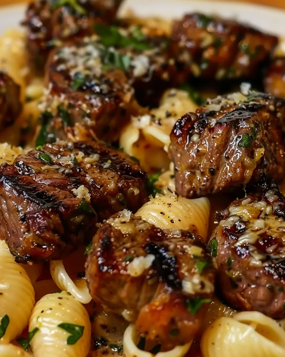 Keywords: Garlic Butter Steak Bites, Creamy Shell Pasta, Indulgent Recipes
