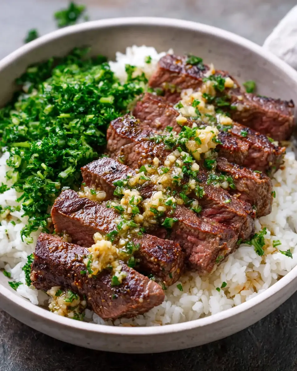 A deliciously indulgent Garlic Butter Steak Bowl that combines tender steak with garlic butter flavors for an unforgettable dining experience.