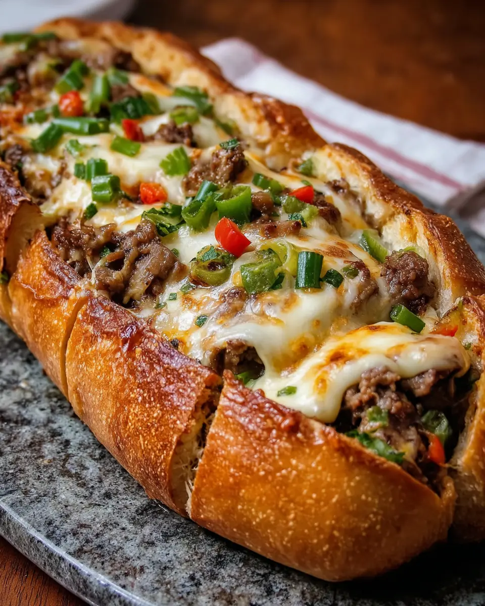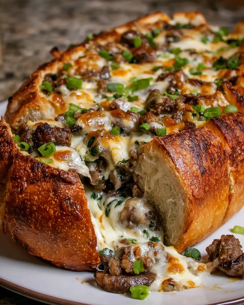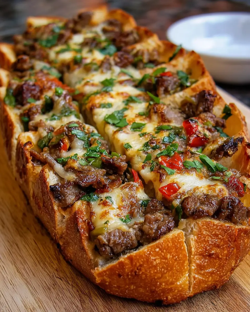 PrintGarlicky Philly Cheesesteak Stuffed Bread: A Juicy Delight for Home Cooks